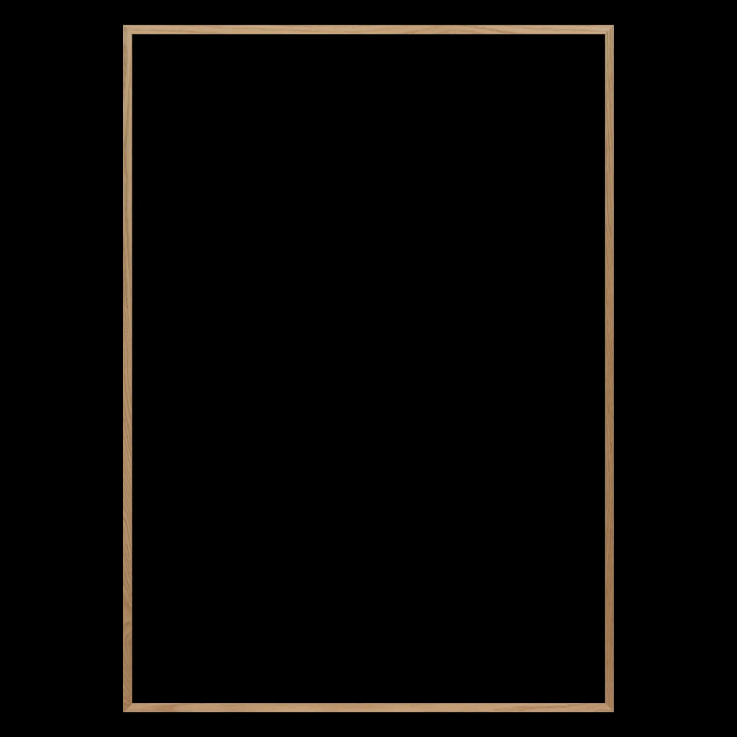 Rammens profil er smal (12 mm bred). Det har vi valgt, så ramme og plakat passer proportional sammen. Rammen er yderligere dimensioneret med en vis indvendig tykkelse fra plakat ud mod rammens kant, for at sikre en eksklusiv dybde i udtrykket.