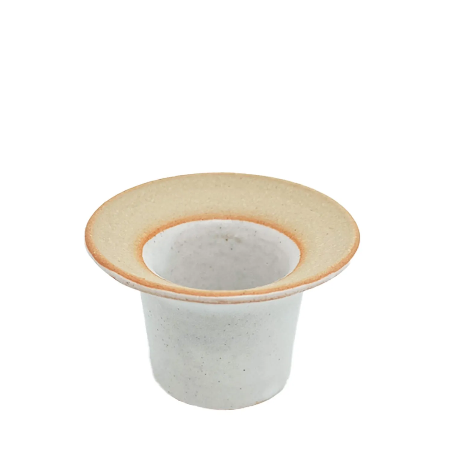 Æggebæger fra det danske keramiker Sarah Dannesboe. Æggebægrene er drejet på drejeskive og fås i farven creme med sandkorn, der giver tekstur til leret. Den grå/brune farve kommer med små pletter af lava og er glaseret i semi-mat glasur. Glasuren har beige pletter, som kommer fra både jern i glasuren og lavaen i leret.
