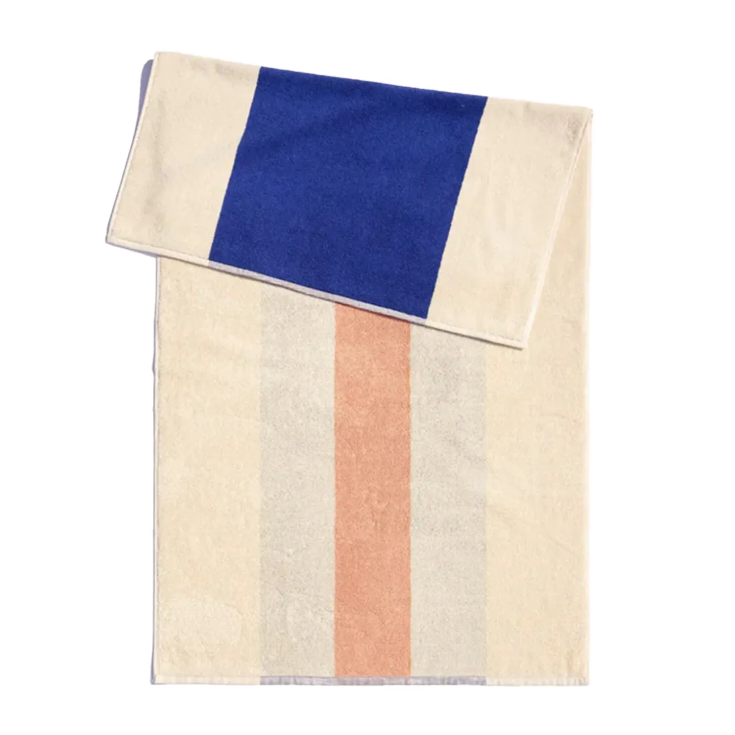Badehåndklæde i GOTS certificeret bomuld fra det Amsterdambaserede brand, Suite702. Farvesammensætningen er resultat af et samarbejde med den hollandske designer, Karel Martens, og er baseret på Martens kunstværk, hvor han med udgangspunkt i en særlig logaritme og historiske billeder skabte et kunstværk med farvesammensætninger, anvendt på strandhytter ved den franske havneby, Le Havre. Badehåndklædet er fremstillet i Portugal, vævet med korte løkker for at opnå stor blødhed.