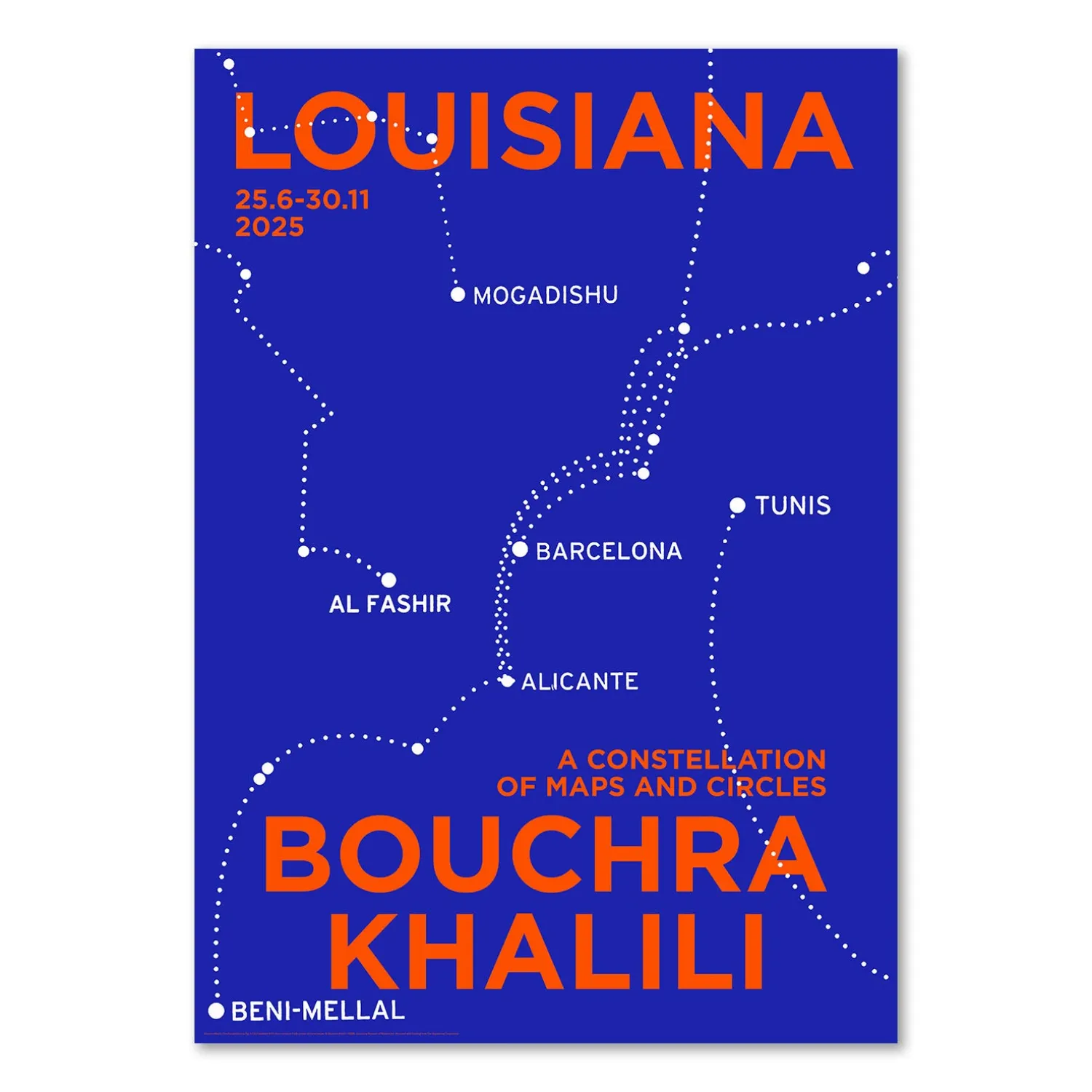 Louisiana Plakat med værket A Constellation of Maps and Circles af den marrokansk-franske kunstner Bouchra Khalili, udgivet i forbindelse med udstillingen med kunstneren (2025).