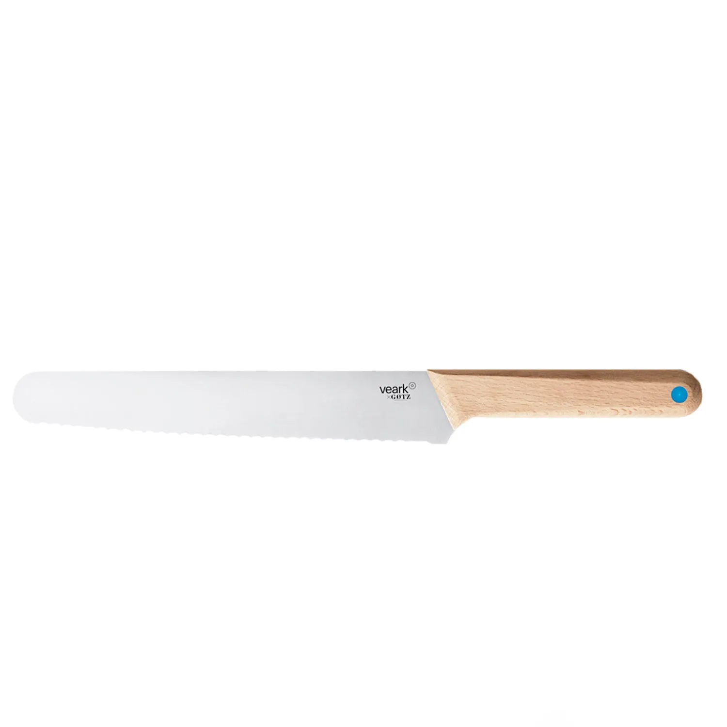 Brødkniv, fremstillet i den tyske kniv-by, Solingen og designet af det danske brand, Veark i samarbejde med den københavnske kok og bager, Jesper Gøtz. Den afrundede spids af BK22-bladet, samt den ekstra støtte til balancefingeren, kan tilskrives Jespers Gøtz’ erfaring med at skære igennem mange, store surdejsbrød hver dag.