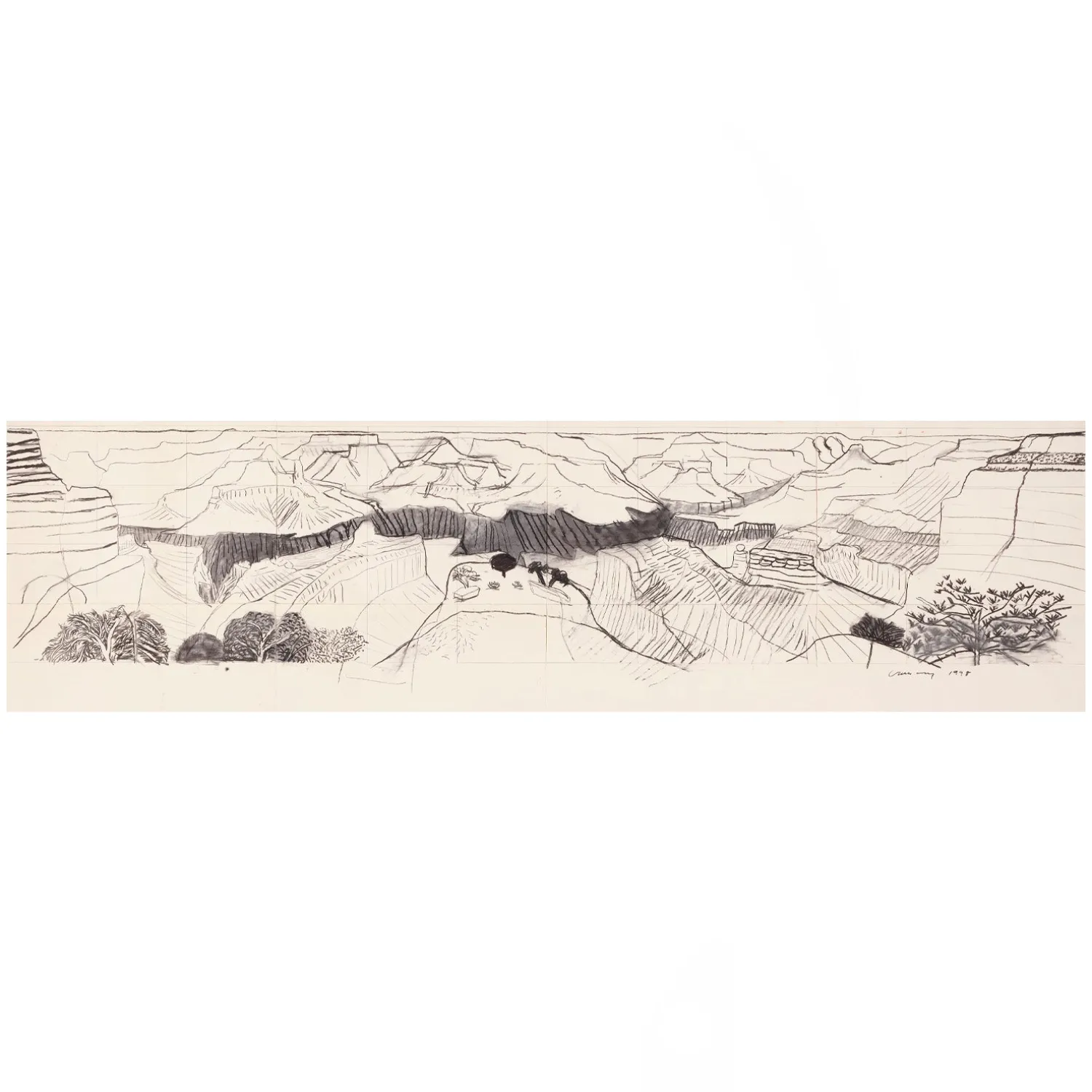 Louisiana Postkort med værket A Closer Grand Canyon (1998) af den engelske kunstner David Hockney, i forbindelse med udstillingsserien “At se nærmere” (2025). Hockney mestrer den klassiske tegning som få, og med hans enestående landsskabs-serier indskriver han sig i tegnekunstens historie. I 2007 erhvervede Louisiana David Hockneys kæmpemaleri A Closer Grand Canyon (1998), bestående af 60 mindre lærreder sat sammen til ét stort billede.