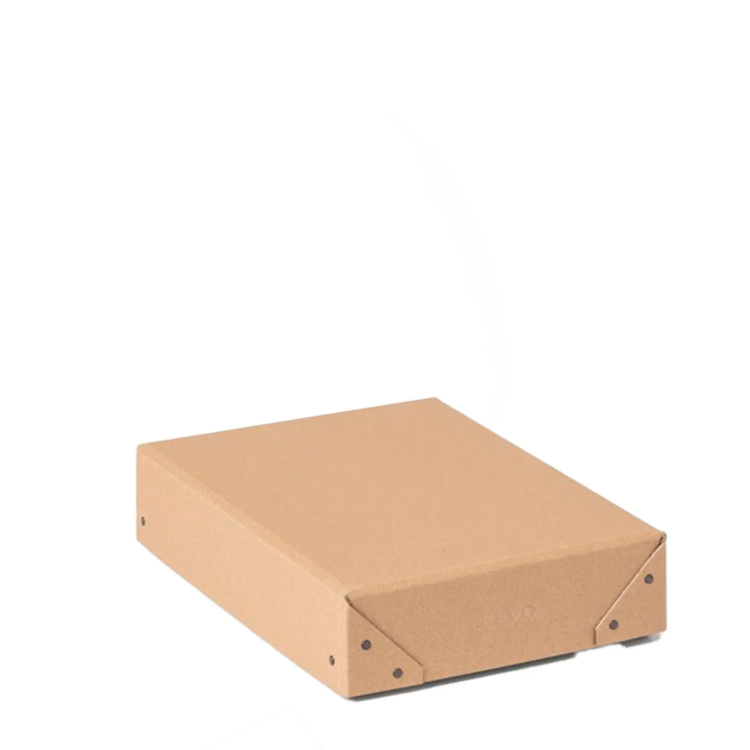 Arkivæske, Ellen A4, i natur fra det danske brand Elvo 1923. Æsken er håndlavet af traditionel fiberpap på den hundrede år gamle Elvo æskefabrik i København og produceret af genbrugspapir, fersk åvand, og organisk lakfarve.