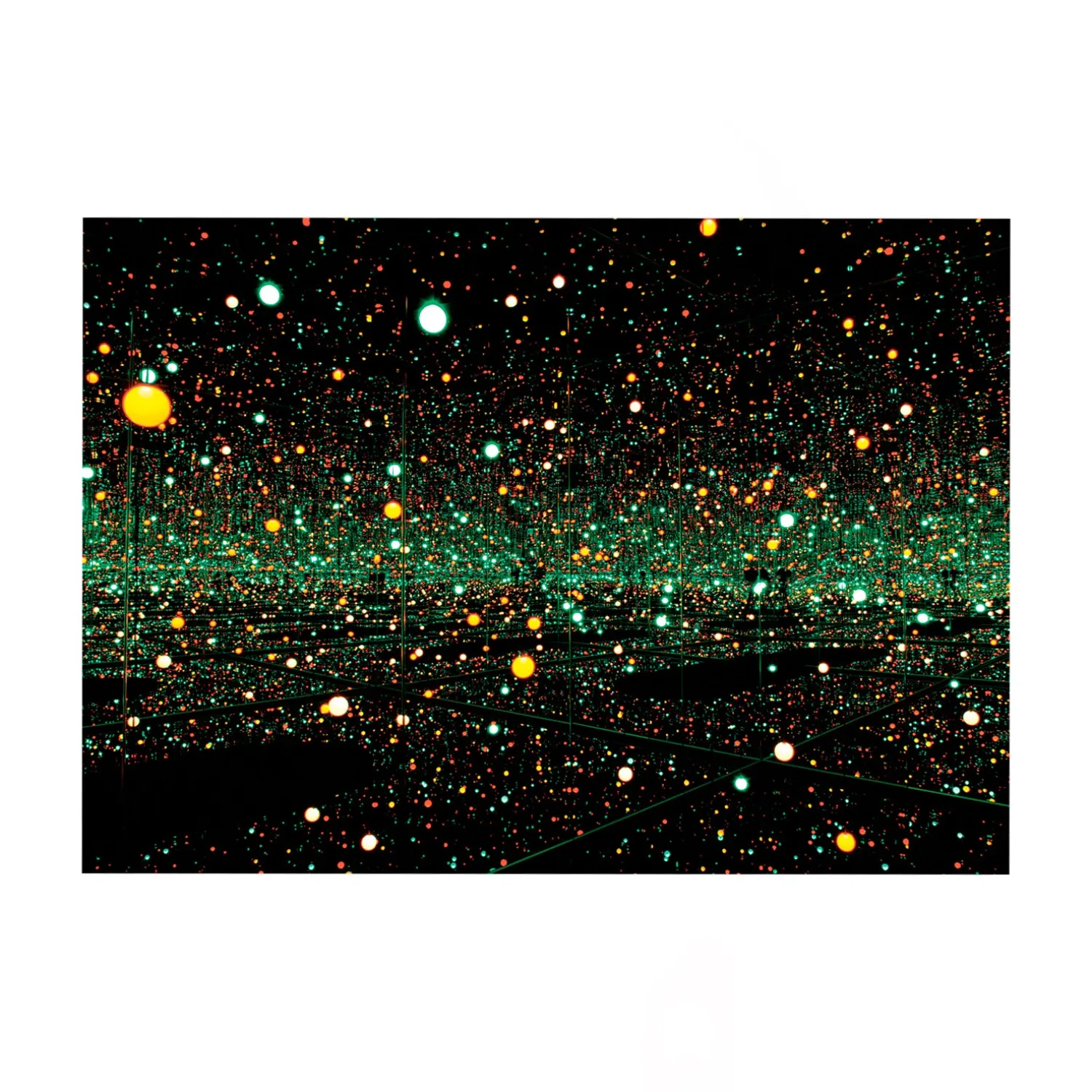 Installationen, der er fra 2008, udgøres af et rum, hvor vægge og lofter er beklædt med spejle, gulvet er et vandspejl, og man står midt i vandet på en platform. Præsentationen af Kusamas livsværk på Louisiana var den første retrospektive udstilling af kunstnerens værk i Skandinavien – og blev også en historisk begivenhed i Louisiana-regi. Hele 340.721 gæster lagde vejen forbi Kusamas fascinerende uendeligheds-univers, og dermed blev udstillingen ‘I Uendeligheden, den tredjemest besøgte i museets historie.