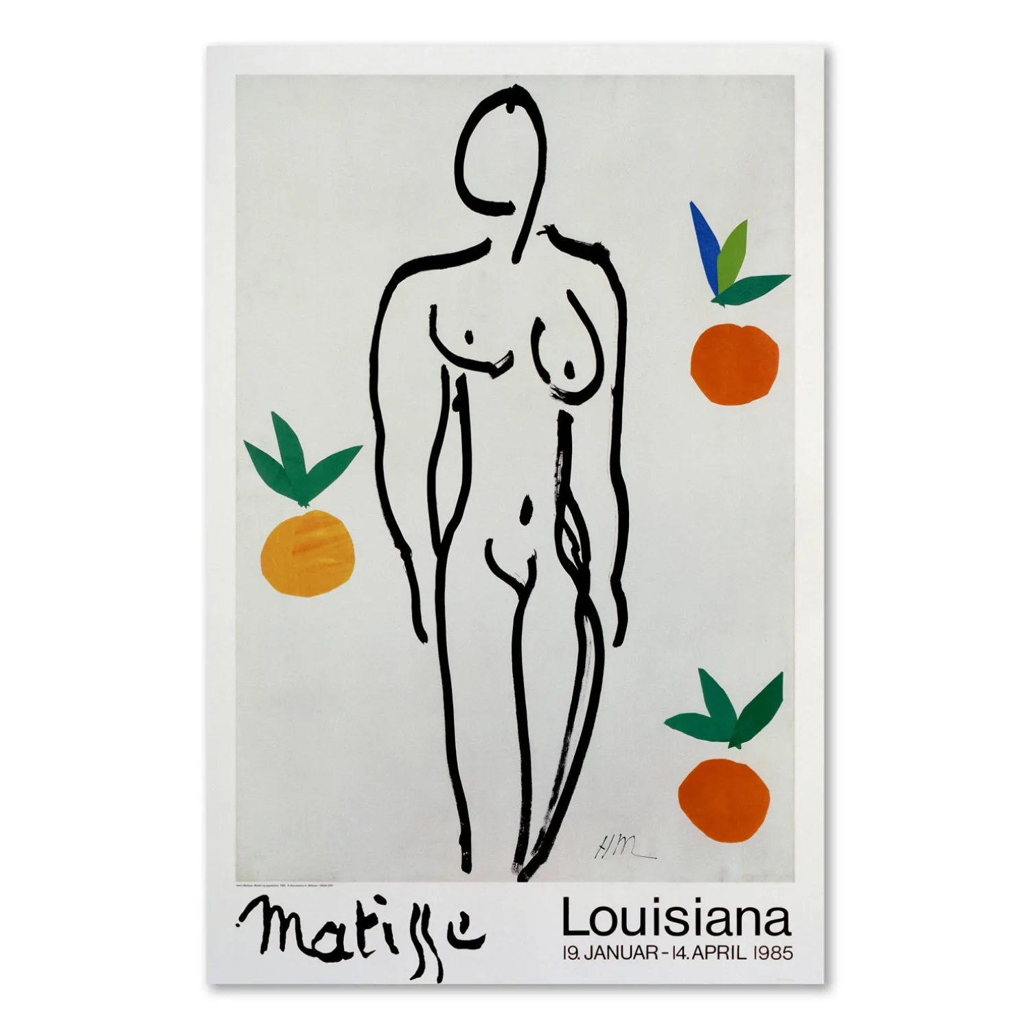 Louisiana plakat med værket, Model og appelsiner, (1953), af den franske kunstner, Henri Matisse. Plakaten blev oprindeligt trykt i forbindelse med Louisianas første udstilling med Matisse, i 1985, og er i dag er en del af museets særlige udvalg af Louisiana plakat klassikere.