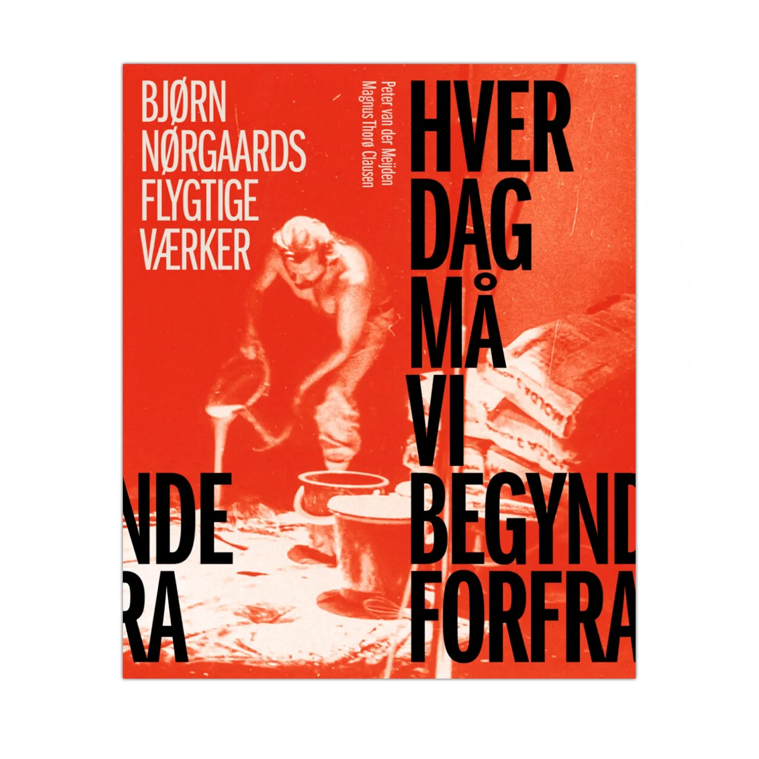 Bjørn Nørgaard har sat et markant aftryk på dansk kunst med sine monumentale værker og eksperimenterende udtryksformer. I bogen, Hver dag må begynde forfra, genfortælles Bjørn Nørgaards flygtige værker gennem fotos, presseomtaler samt kunstnerens egene refleksioner. Bogen er skrevet af kunsthistoriker Peter van der Meijden og kurator Magnus Thorø Clausen. Peter van der Meijden har speciale i 1960’ernes og 1970’ernes flygtige værkformer, blandt andet Fluxus, happenings og Mail Art. Magnus Thorø Clausen har arbejdet med installationskunst og performance i en lang række internationale udstillinger.