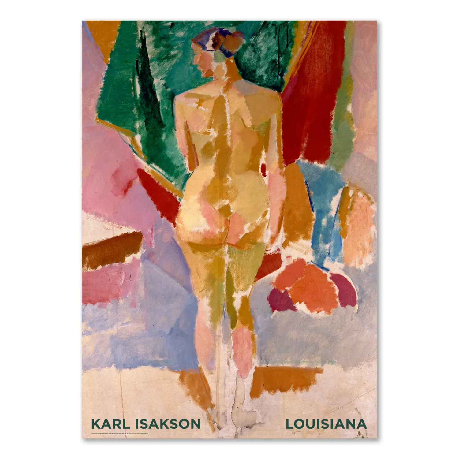 Louisiana plakat med værket, Stående model set fra ryggen, (1918-20), af den svenske kunstner, Karl Isakson. Isakson tilbragte størstedelen af sit professionelle liv i Danmark. Han regnes for en af modernismens pionerer.