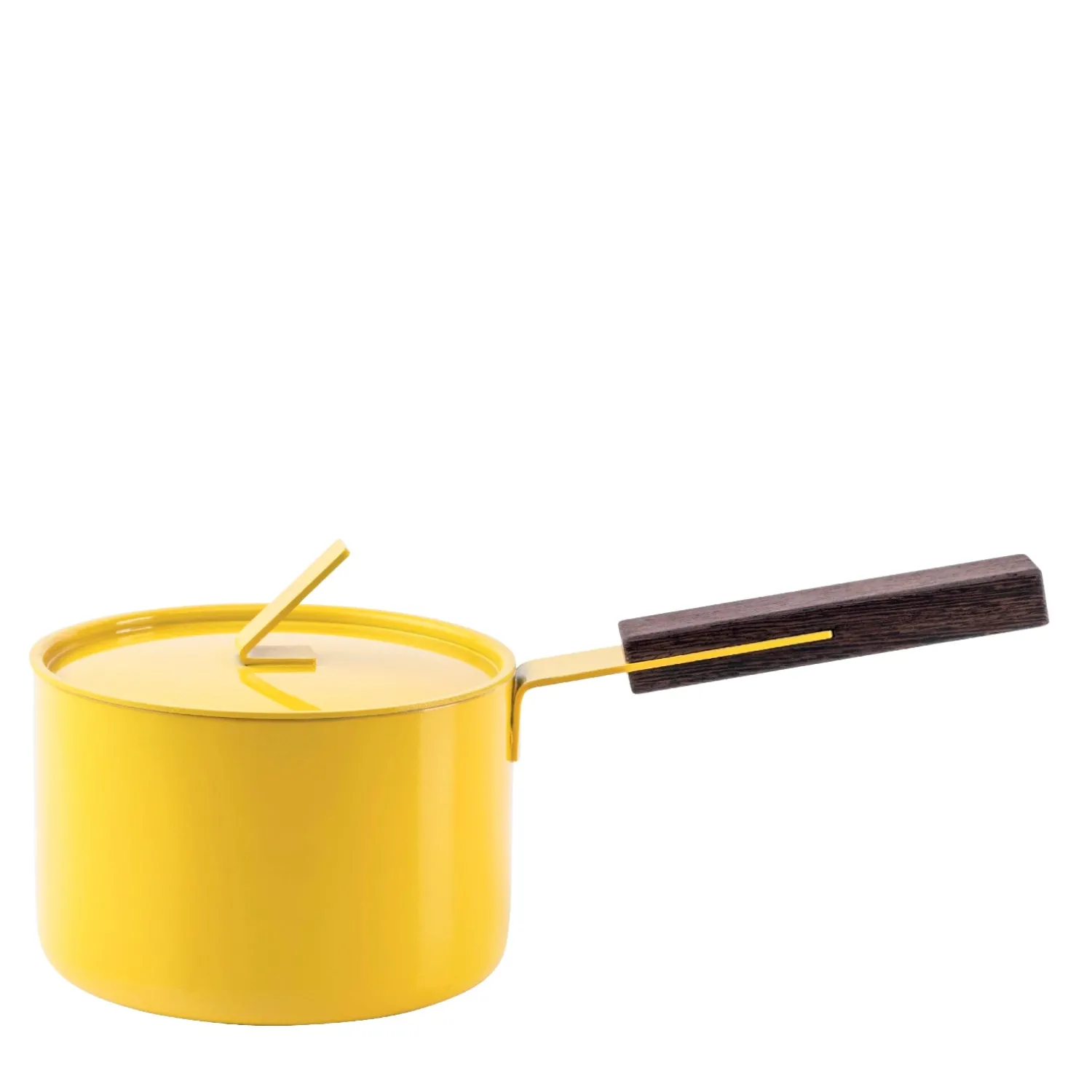 Med en gul kasserolle kan du med god samvittighed servere den varme ret direkte i gryden. Kasserollen er i et flot, enkelt design som passer godt ind i den skandinaviske stil – selv om den faktisk er designet af italienske Lara Caffi, som står bag KNIndustrie.