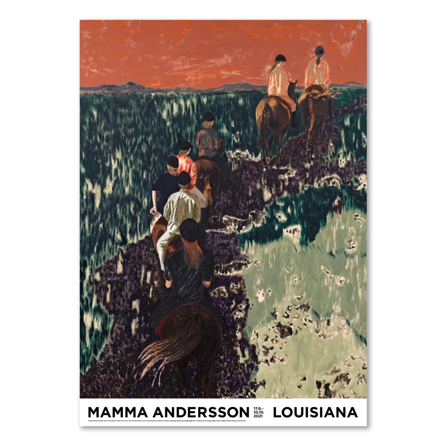 Louisiana plakat med værket, Holiday, (2020), af den svenske maler, Karin Mamma Andersson (f. 1962), som Louisiana præsenterede i 2021 med udstillingen, Humdrum Days. Mamma Andersson står som en af sin generations væsentligste malere og Louisiana præsenterede hende for første gang i stort udtræk i Danmark.