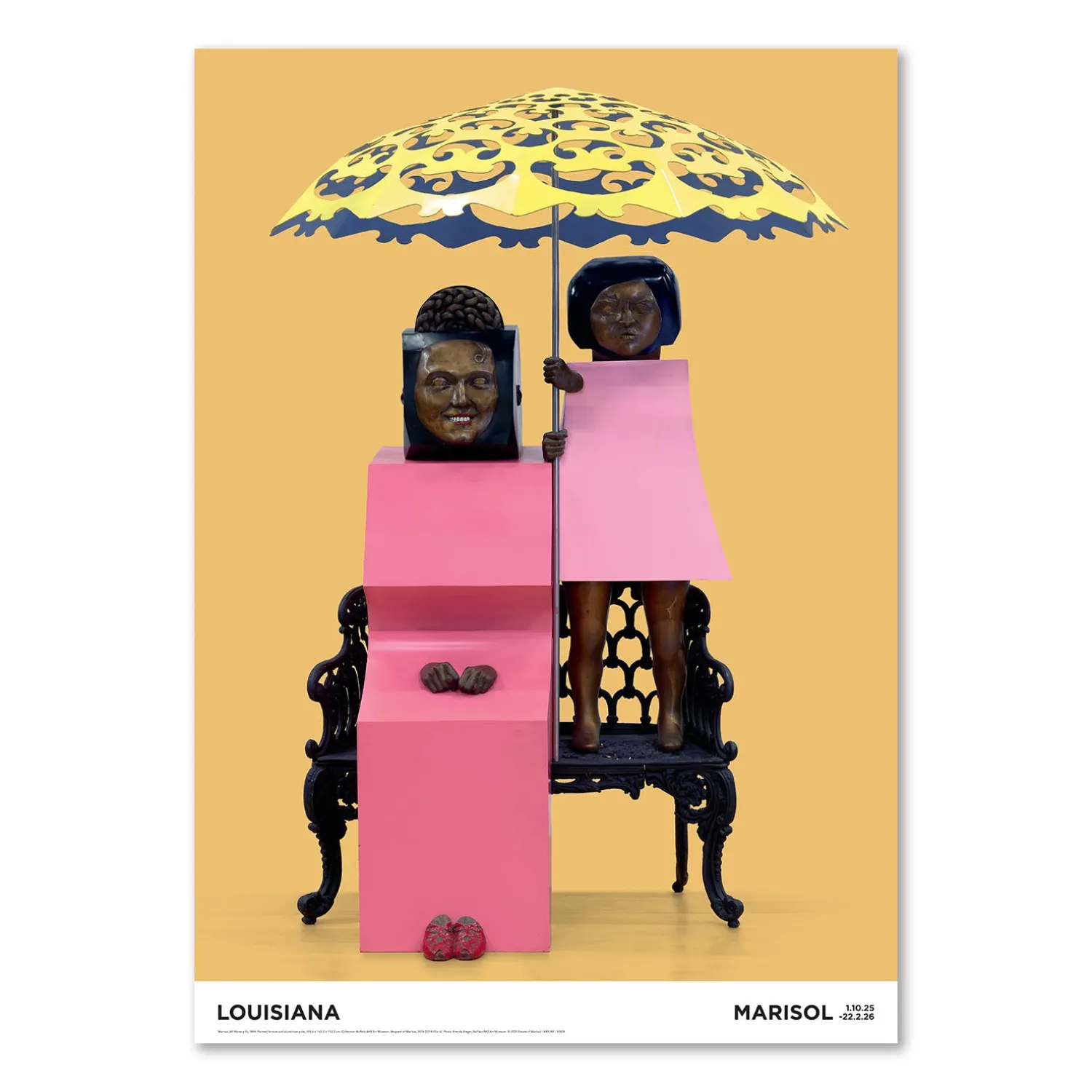 Louisiana Plakat med værket Mi Mamma y Yo, (1968), af den venezuelansk-amerikanske Marisol (1930-2016), udgivet i forbindelse med Louisianas udstilling i 2025.