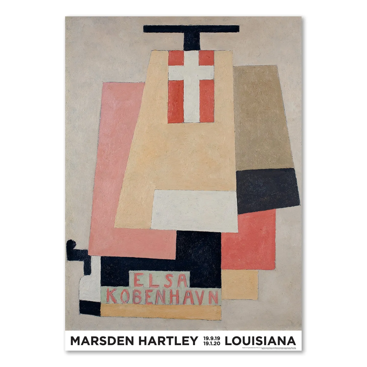 Louisiana Plakat med værket, Elsa Kobenhavn, (1916) af den amerikanske kunstner, Marsden Hartley (1877-1943). Selv om Marsden Hartley kaldes for “Amerikas første store moderne maler i det 20 århundrede”, har hans originale værk længe været overset. Louisiana præsenterede ham i 2019 på den første retrospektive udstilling i Europa i godt 60 år – en udstilling, der blev en øjenåbner for de fleste.