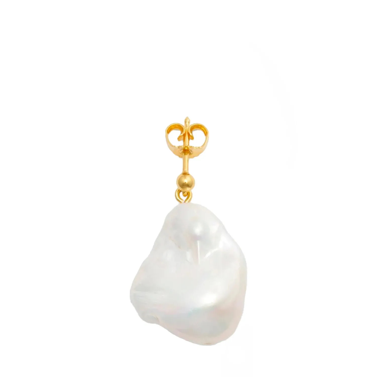Ørestik, Barok, fra det danske smykkebrand, Sorelle Jewellery. Ørestikken er fremstillet i forgyldt 925 sterlingsølv og har en barok ferskvandsperle i en naturlig hvid nuance med et fint perlemorskær. Sorelle smykker er håndlavede i Danmark med fokus på kvalitet og et moderne take på tidløse klassikere. Mindre perler sættes sammen med større. Diskrete forskelle i farver skaber dynamik. Og den organiske form på de færdige smykker kan lede tanken hen på det vand, hvor perlerne opstod.