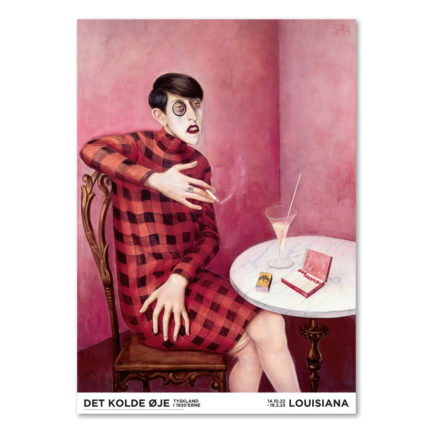 Louisiana Plakat med værket, Bildnis der Journalistin Sylvia von Harden, Portræt af journalisten Sylvia von Harden, (1926), af den tyske kunstner, Otto Dix, (1891-1969). Plakaten er udgivet i 2022 i forbindelse med Louisianas udstilling om Tyskland i 1920’erne, Det Kolde Øje. Dix’ værk er et centalt udtrykt for mange af periodens registrerende, ofte karikerede og forvrængede portrætter af kølige figurer, alene og uden øjenkontakt – og pryder i øvrigt forsiden af den Louisiana Revy, der er udgivet i forbindelse med museets udstilling.