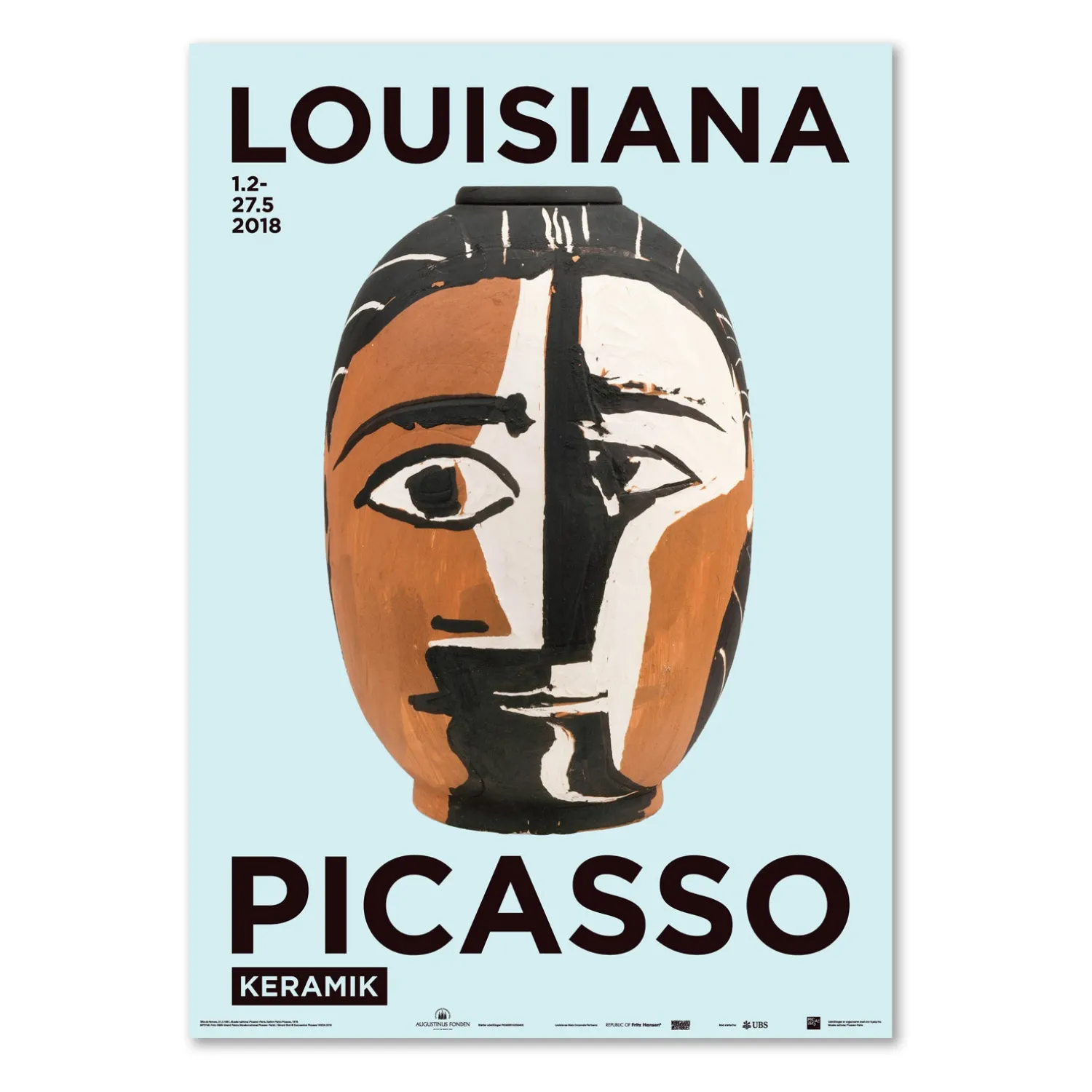 Louisiana plakat med værket, Tête de femme, kvindehoved, (1961), af den spanske kunstner, Pablo Picasso (1881 – 1973). Plakaten er udgivet i forbindelse med 2018 udstillingen, Picasso Keramik – Louisianas ikke mindre end syvende udstilling af værker af den spanske mester. Udstillingen samlede 160 keramiske værker fra årene 1947-1964, og var den første store i Skandinavien af sin slags.