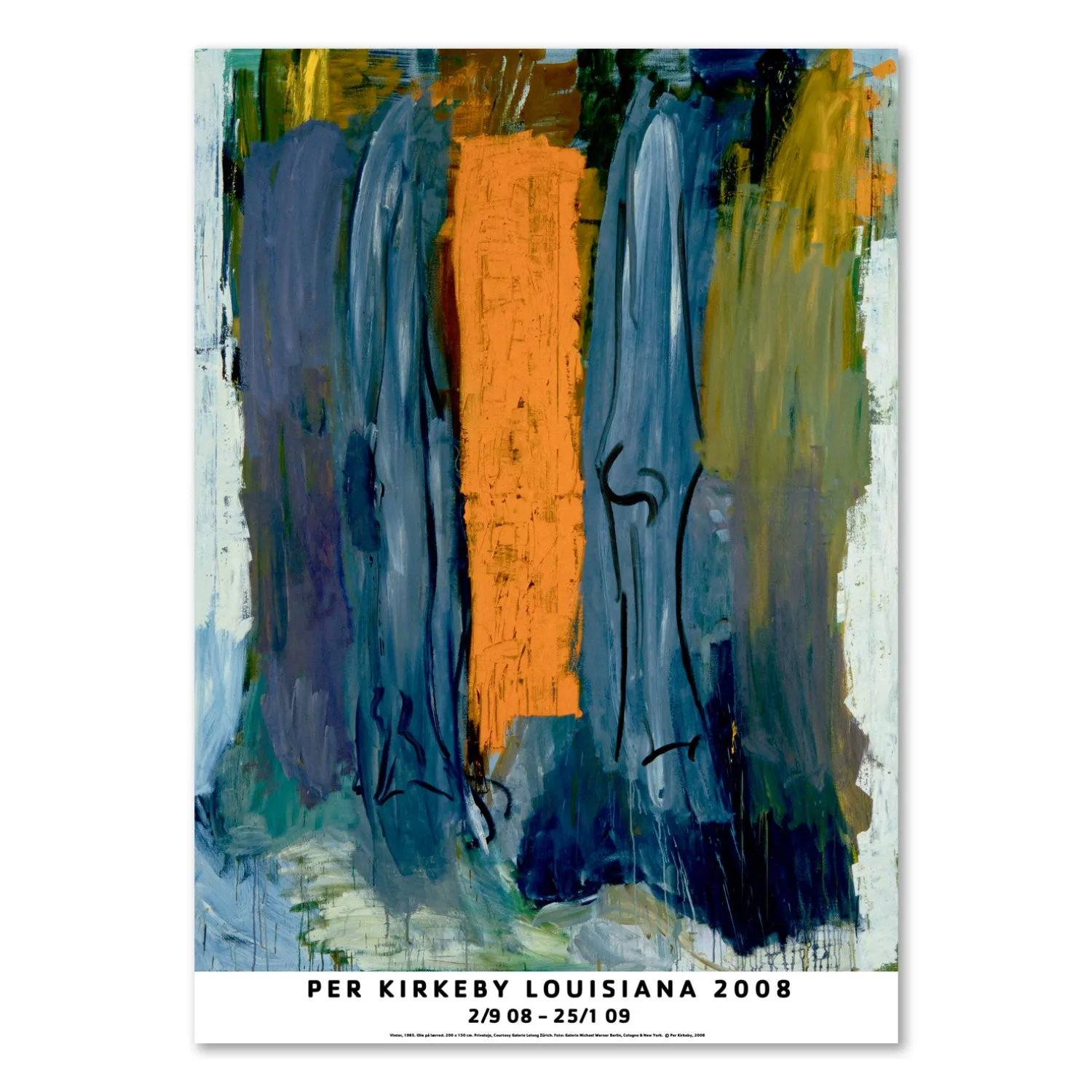 Udstillingsplakat med værket, Vinter, (1985) af den danske kunstner, Per Kirkeby (1938-2018) i forbindelse med udstillingen med Kirkeby på Louisiana i 2008/2009. Per Kirkebys værker udgør et af tyngdepunkterne i Louisianas samling, og museet tilbød med denne udstilling et retrospektivt møde med alle de genrer, kunstneren har bevæget sig igennem.