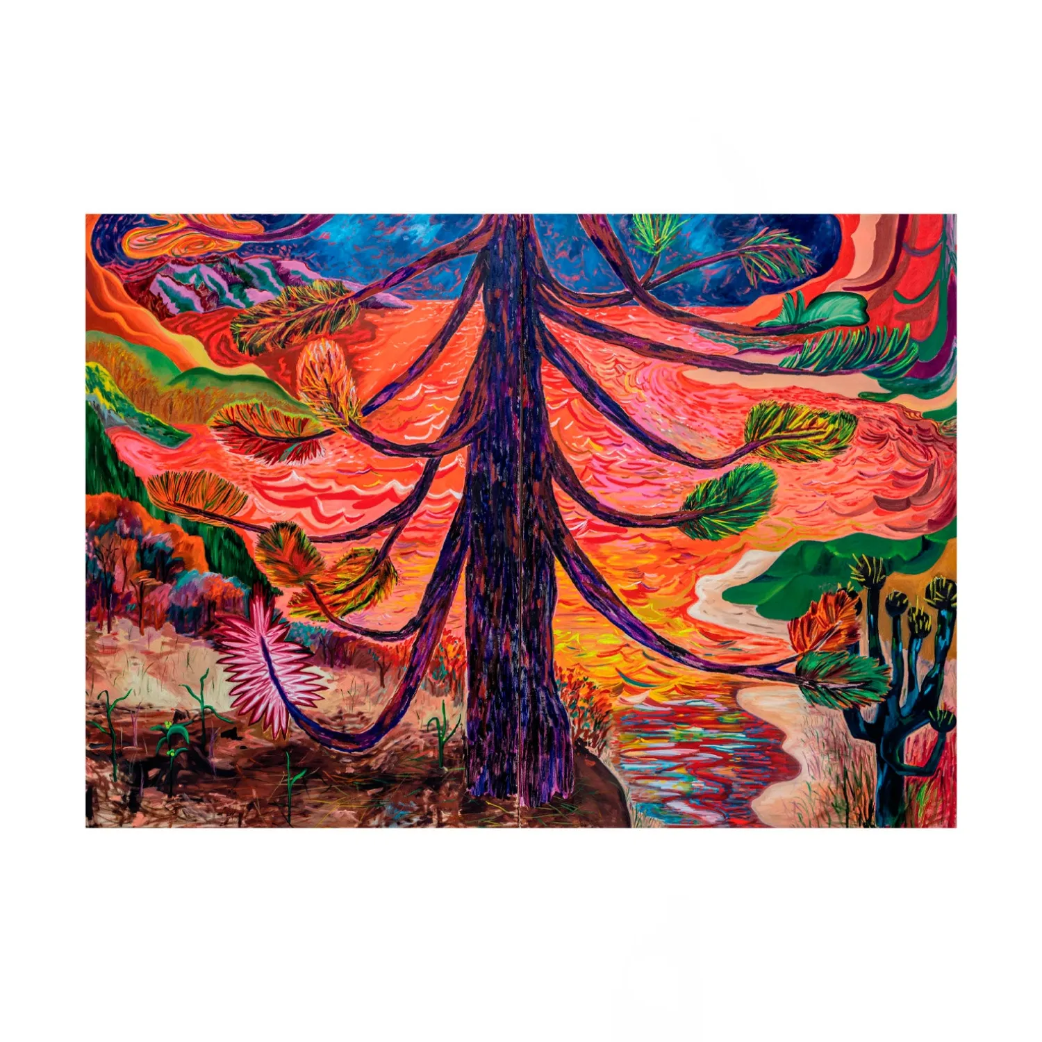 Louisiana Postkort med værket Collide af den amerikanske kunstner Shara Hughes, udgivet i forbindelse med udstillingen Louisiana Nye Værker (2025). Udstillingen præsenterer et stort udvalg af de mange nye værker, Louisiana har erhvervet sig gennem de seneste år til samlingen mellem 2022-2025. Udstillingen præsenterer mere end 120 værker af godt 70 kunstnere fra hele verden. Shara Hughes (f. 1981) benytter et væld af teknikker og refererer ekvilibristisk kunsthistorien i sine farvestrålende malerier, og er især anerkendt for sine opfundne landskaber.