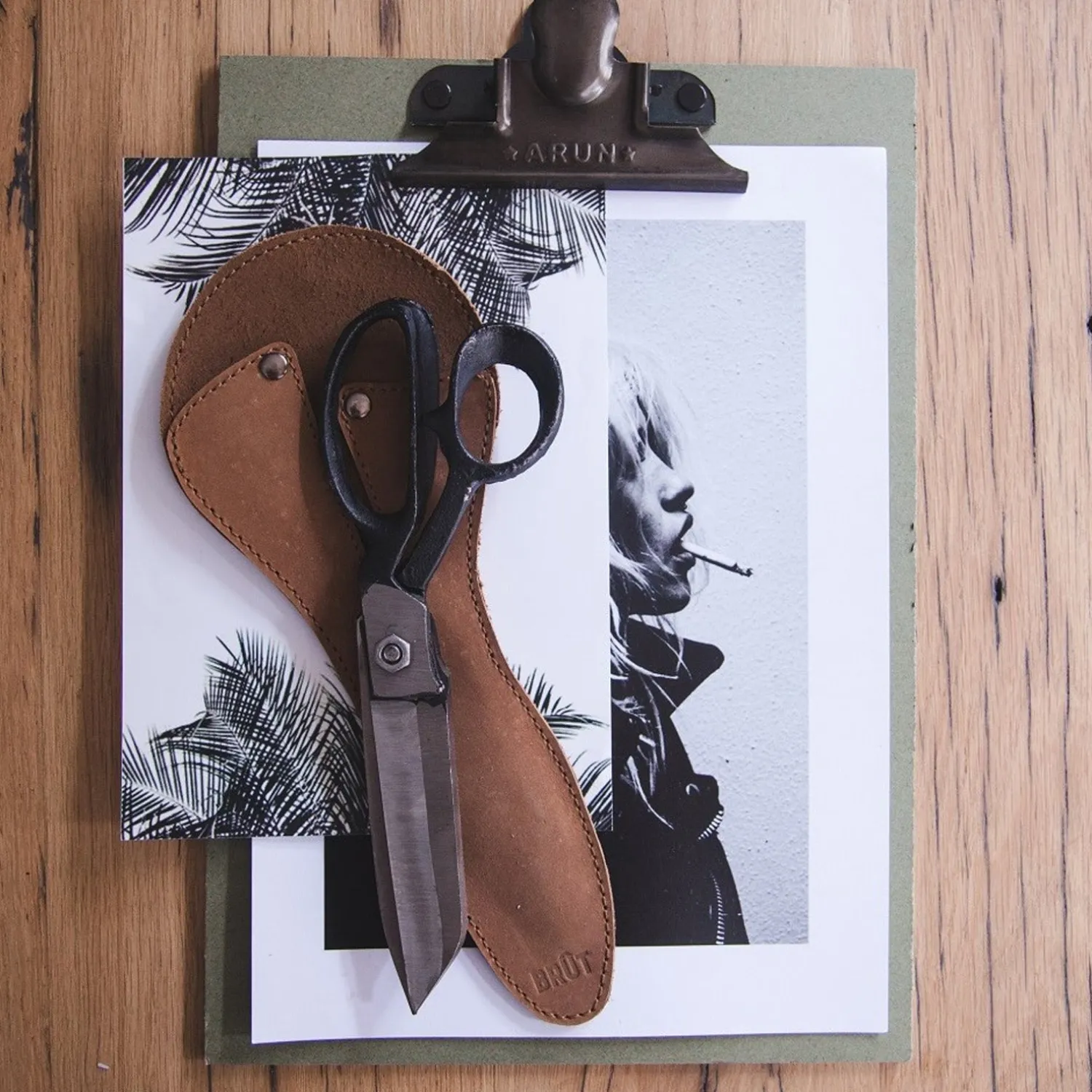 Original 9″/23 cm all purpose saks fra det hollandske designbrand, Brût Homeware. Saksen er i et bøffellæder etui. og er dermed ikke bare et praktisk værktøj, men også en dekorativ detalje.