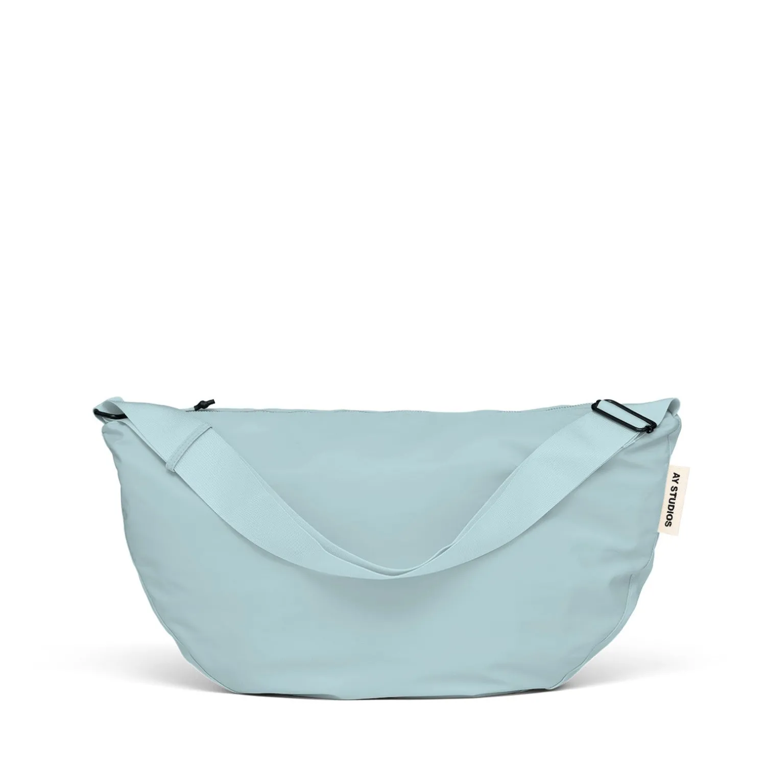Skuldertaske, Messenger, i 100% genavendt nylon fra det danske designbrand AY Studios. Danske AY Studios blev etableret i 2019 af Torben Holt. Det hele startede med en rejse til Australien, og i dag har virksomheden base i Århus. Det danske designbrand startede ud under navnet ‘James Ay’ og sortimentet omfattede solbriller skabt i genanvendte materialer. Navnet var en hyldest til den første moderne solbrille af opfinderen James Ayschough (1720-1759). Sidenhen er sortimentet udvidet sig med bl.a. tasker og etui til solbriller og det danske brand har samlet deres design under navnet AY Studios.