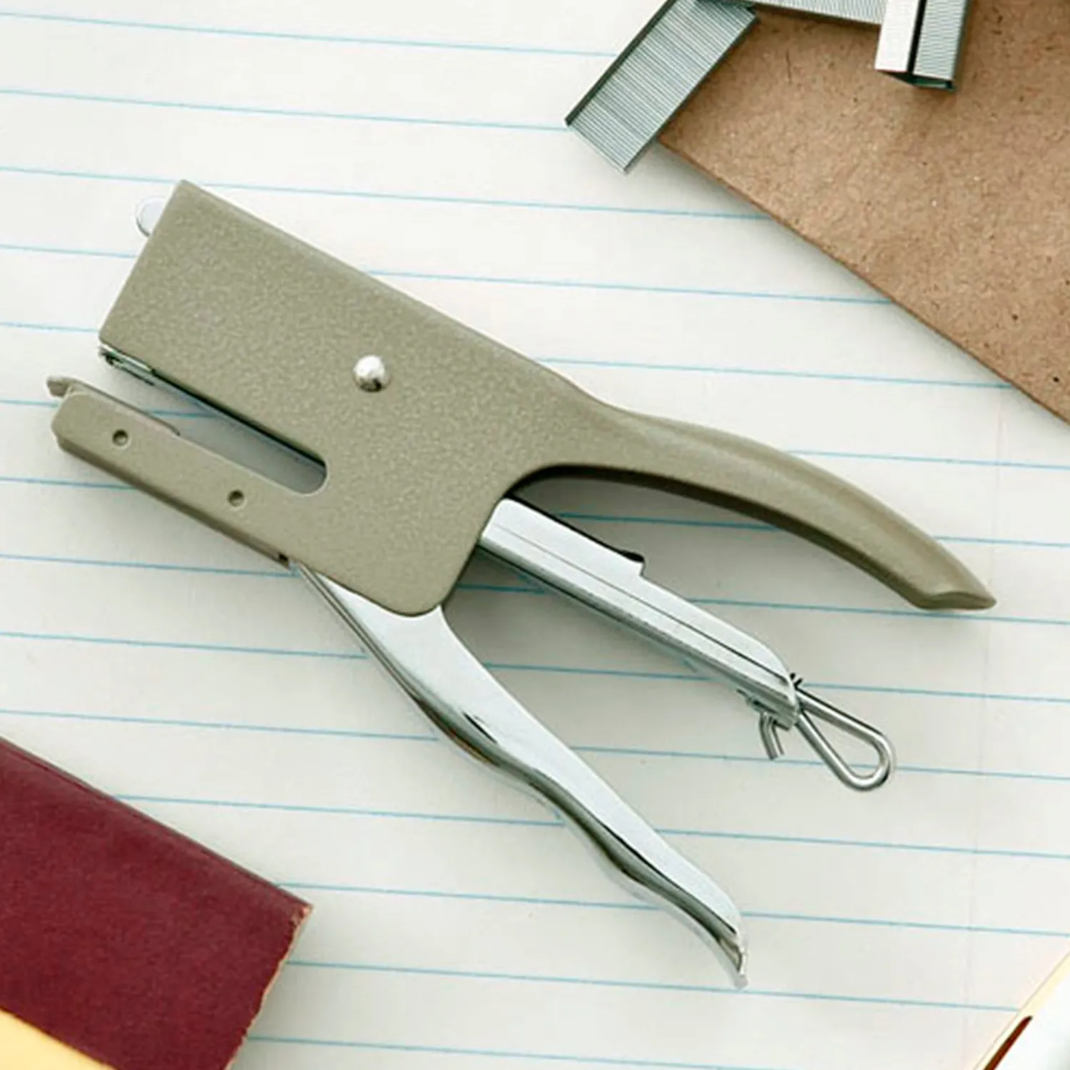 Klassisk hæftemaskine fra japanske, Penco. Brandet blev født og navngivet efter inspiration fra en amerikansk kuglepen – penco – pen company. Penco producerer i dag en vifte af kontorartikler ud fra et ønske om at være med til at dele den fysiske oplevelse – for eksempel duften og følelsen af papir, som var det en gemt skat i en boghandel inde i byen. Penco hæftemaskinen er såkaldt hammermalet – en belægningsproces, der ikke kun får den til at se mere industriel ud, men også forstærker og glatter overfladen.