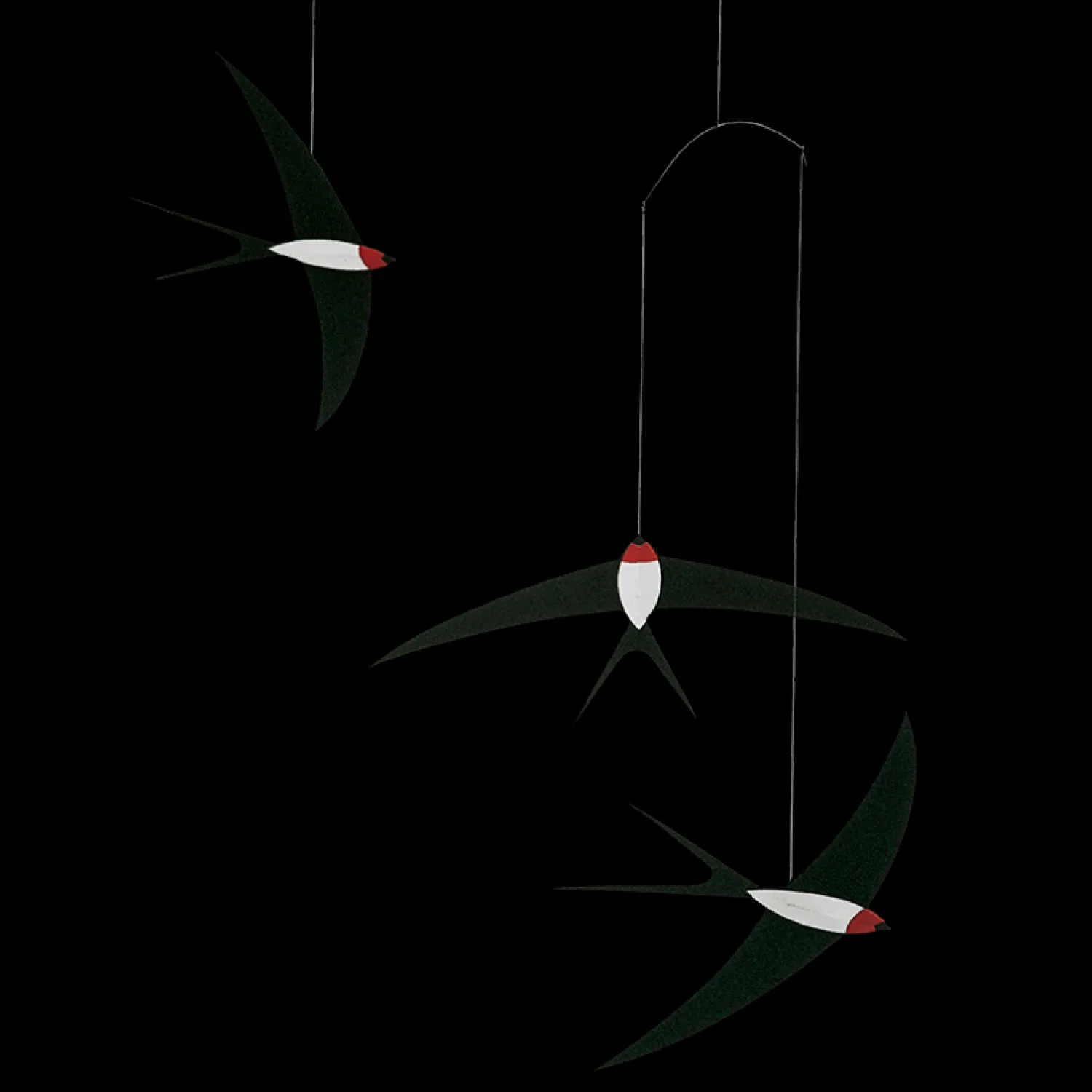Svale-mobilen er fra det danske familieejede firma, Flensted Mobiles, der siden 1954 har fremstillet håndlavede mobiler. Mobilen består af tre elegante og akrobatiske svaler, der er i endeløs bevægelse og i evig harmonisk balance. Kan kun købes online.