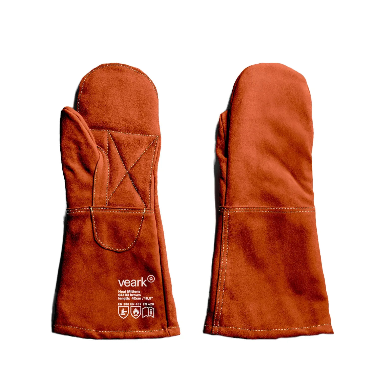 Vanterne har ekstra polstring på håndfladen og et ekstra langt ærme for at beskytte dine arme mod forbrændinger fra ovnens kanter. De er lavet af læder af høj kvalitet og med et slidstærkt canvas-for.