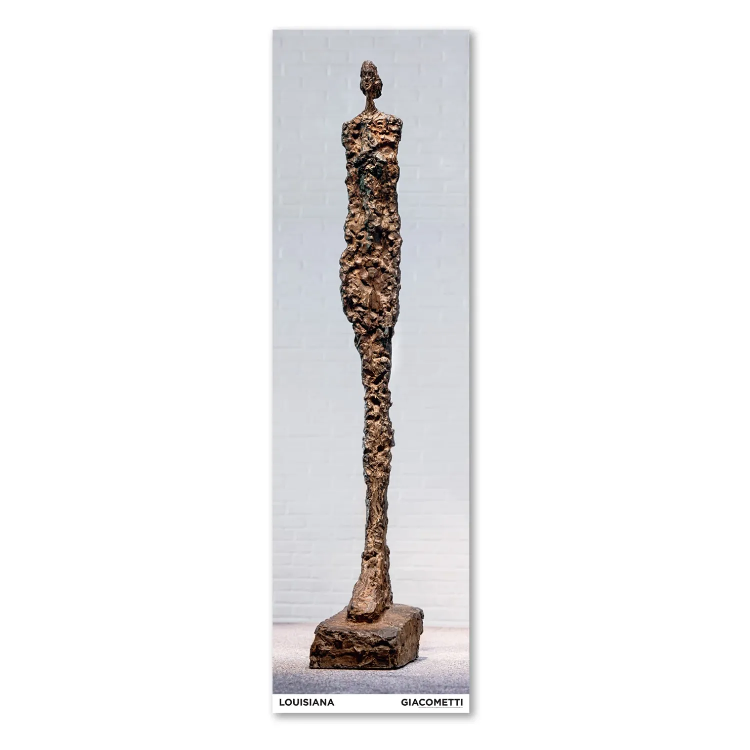 Louisiana plakat med værket, Femme de Venise III – Venedig-kvinde, (1956) af den schweiziske kunstner, Alberto Giacometti (1901-1966). Giacometti er en hovedperson på Louisiana og ligesom Giacomettis andre ikoniske figurer står Venedig-kvinde(erne) centralt i museets samling.