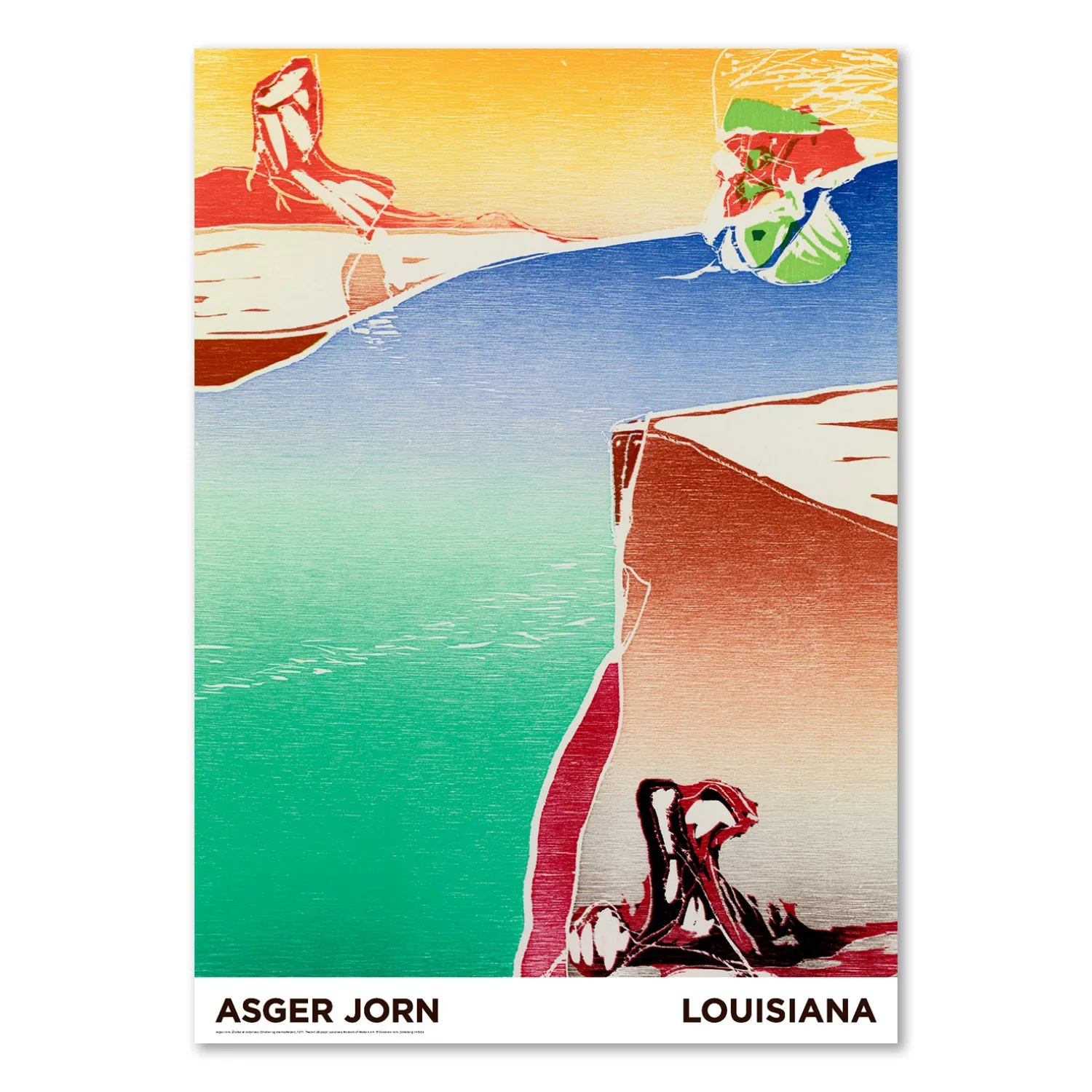 Louisiana plakat med et værk fra serien, Etudes et surprises, fra 1971, af den danske kunstner, Asger Jorn (1914-73). En serie billeder, der viser en mere sart og sanselig side, end vi normalt ser fra Jorn. Asger Jorn er en af de helt centrale personer i det 20. århundredes danske kunst og hans værker har en særlig plads på Louisiana.