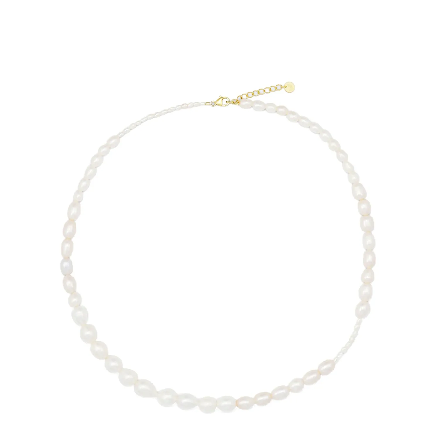 Perlerne er unikke, hvorfor størrelse og form kan variere. Vær opmærksom på, at kæden kan give sig en smule med tiden.