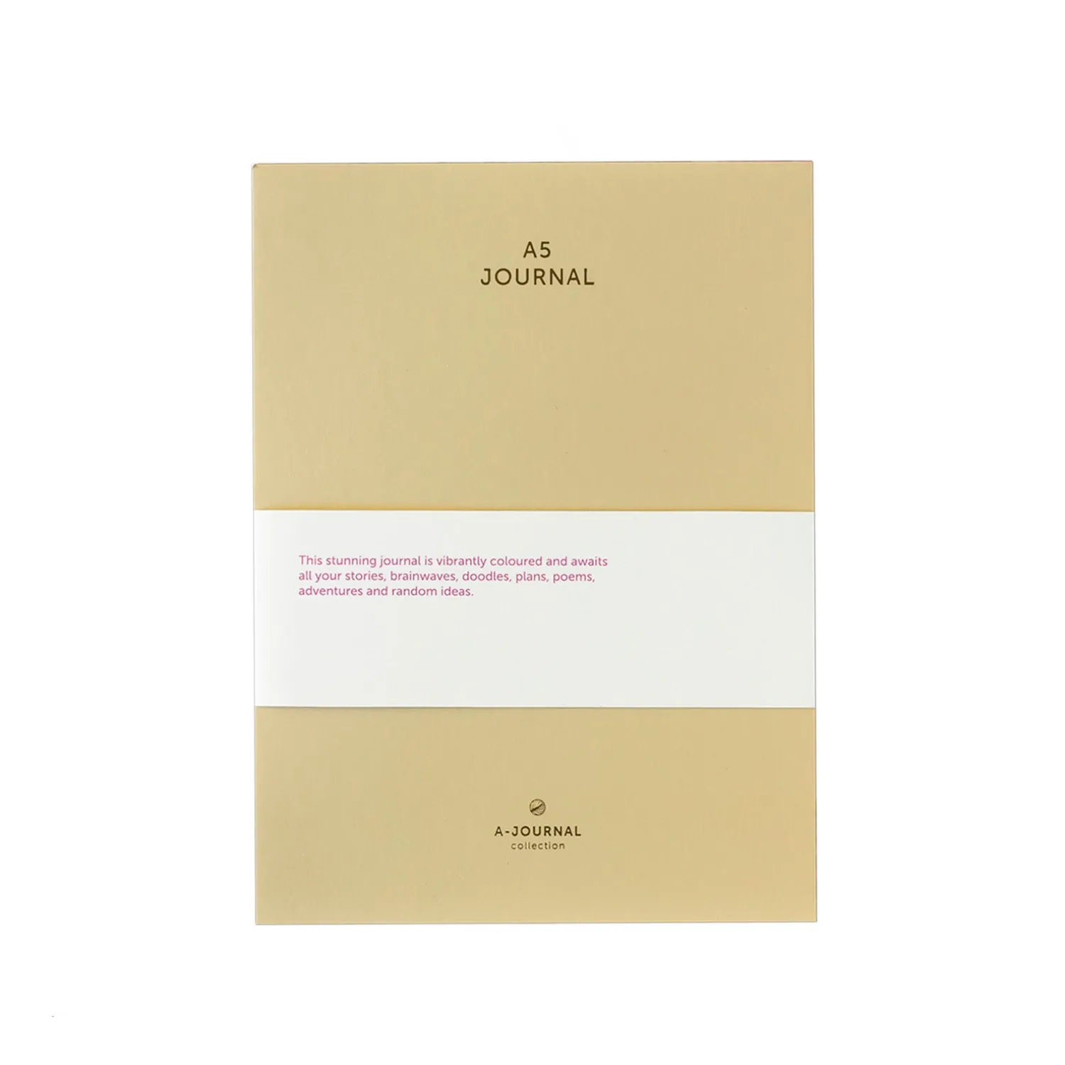 A5 Journal fås i et beige omslag med pink kantprint og har linjeret sider.