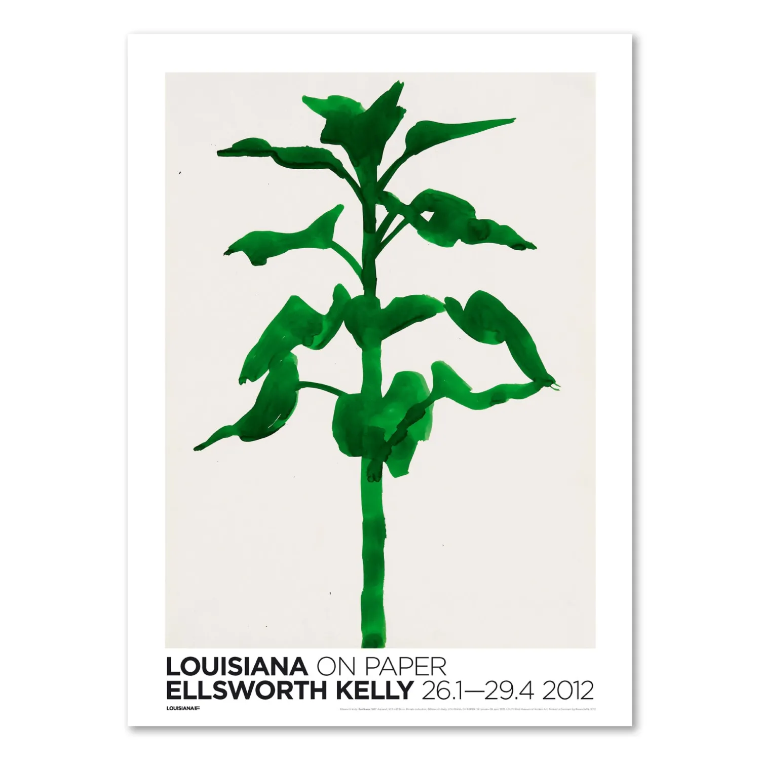 Louisiana plakat med værket, Sunflower, (1957), af den amerikanske kunstner, Ellsworth Kelly (1923-2015). Plakaten blev trykt i forbindelse med Louisianas udstilling med kunstneren i 2012, som viste 40 tegninger af planter og blomster. Kelly satte i mere end en menneskealder dagsordenen for den abstrakte kunst i USA.