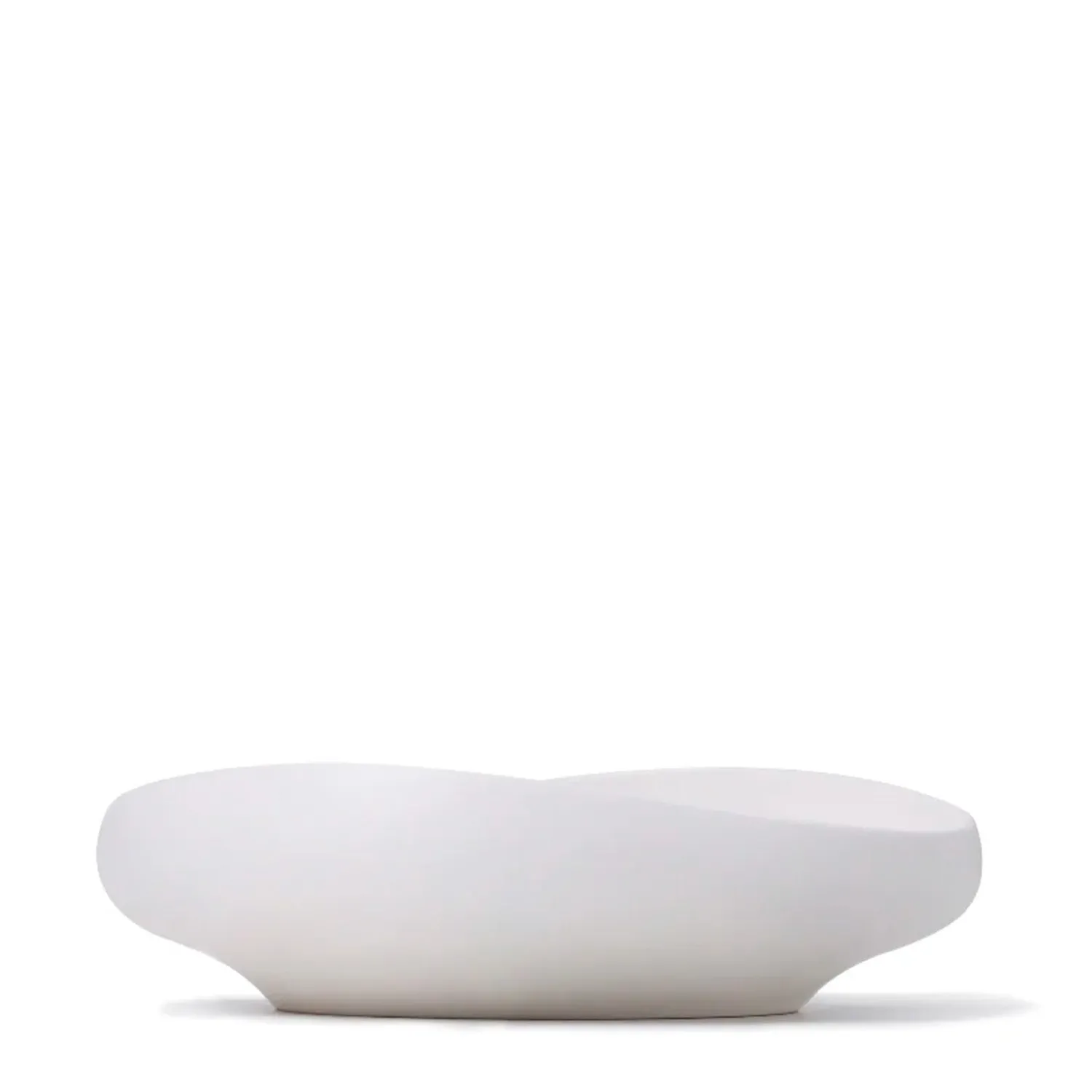 Skål, FJ Essence- Flat Bowl, fremstillet ud fra gamle tegninger af Finn Juhl Jørgensen. Den hvide porcelænsskål er oprindeligt designede i 1952, men den kom aldrig i produktion, fordi formerne var for komplekse.