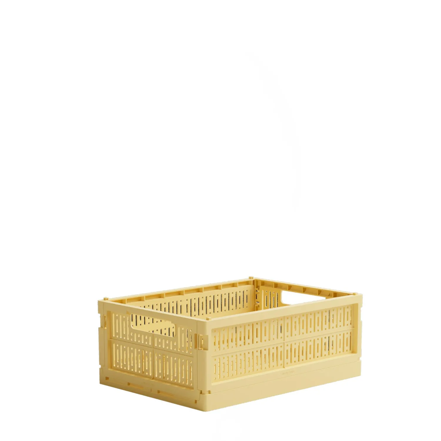 Foldekasse i 100% genanvendt plast fra danske Made Crate. Foldekassen fås i 3 forskellige størrelser – mini, midi og maxi med forskellige farver og udtryk. Made Crate kasserne er stabelbare på tværs af de tre størrelser.