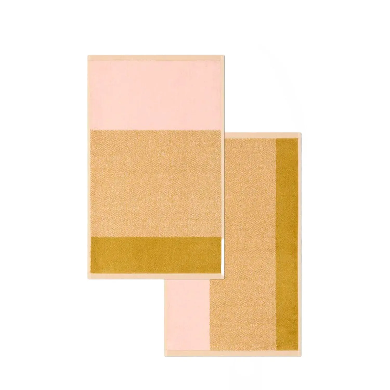 To gæstehåndklæder fra det hollandske designbrand Suite702. Håndklæderne er fremstillet i blødt økologisk bomuld og er et samarbejde med den anerkendte designer Lex Pott. Hver farvekombination fås i to design: med lodrette eller vandrette striber.