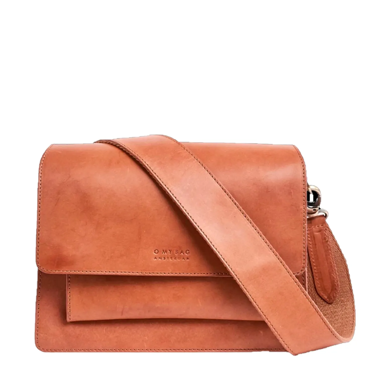 Harper skuldertaske i cognac farvet læder fra det hollandske brand O My Bag. Taskens design er inspireret af en harmonika, som særligt ses, når tasken ses fra siden. Der medfølger to remme, en bred og en smal læderrem. Indvendig har tasken tre rum og er foret med O My Bag signatur stribet lærredsstof. Derudover er der et udvendigt rum, som kan lukkes med lynlås. Det midterste indvendige rum kan også lukke med lynlås.