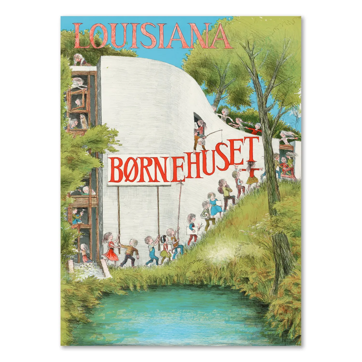 Louisiana Plakat i anledning af Børnehusets åbning i 1994 i Humlebæk. Tegner og forfatter Ib Spang Olsen (1921-2012) var ophavsmanden til plakaten, som forestiller det nyåbnede Børnehus, beliggende på skrænten ned mod Søhaven. Børnene i motivet danner en kæde rundt om og i Børnehuset. Ib Spang Olsen optrådte også og lavede aktiviteter for børn hver dag i hele efterårsferien det år. Med sig havde han sin hustru Nulle Øigaard, sine drenge Martin og Lasse Spang Olsen samt deres veninde Josefine Bergsøe, som aktiverede børnene udendørs i parken, eller i Børnehuset.