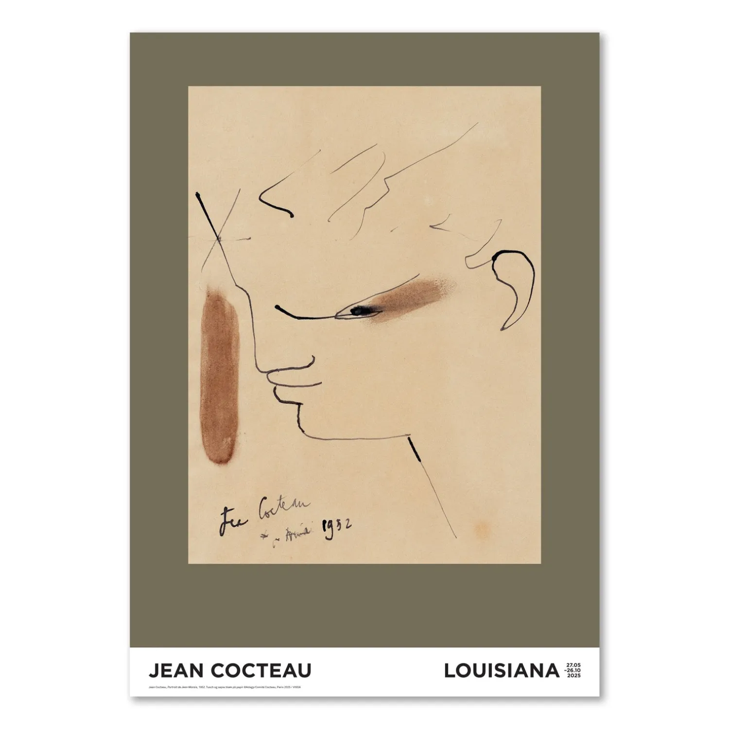 Louisiana print med værket Portrait de Jean Marais, 1952 af den franske kunstner Jean Cocteau, som Louisiana præsenterer i udstillingen At se nærmere (2025), i forbindelse med udstillingsserien Louisiana on Paper.