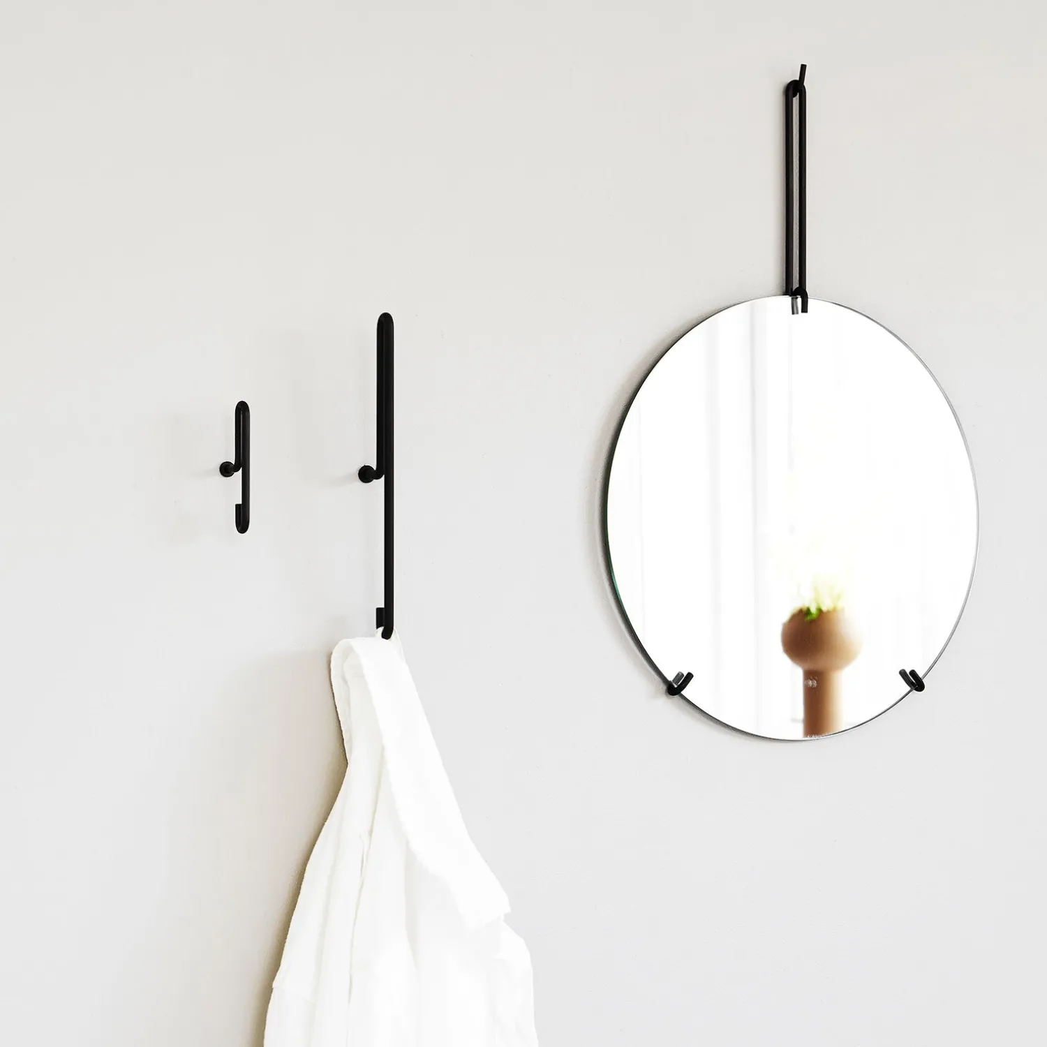 Wall Hook fra danske Moebe er dannet af ét gennemgående element og har to punkter til at hænge frakke, nøgler eller kasket på – enten over toppen af den bøjede wire eller på krogen nedenunder. Vægkrogen kan bruges enkeltvist eller som en række kroge placeret sammen. Den kommer i to størrelser og tre finishes.