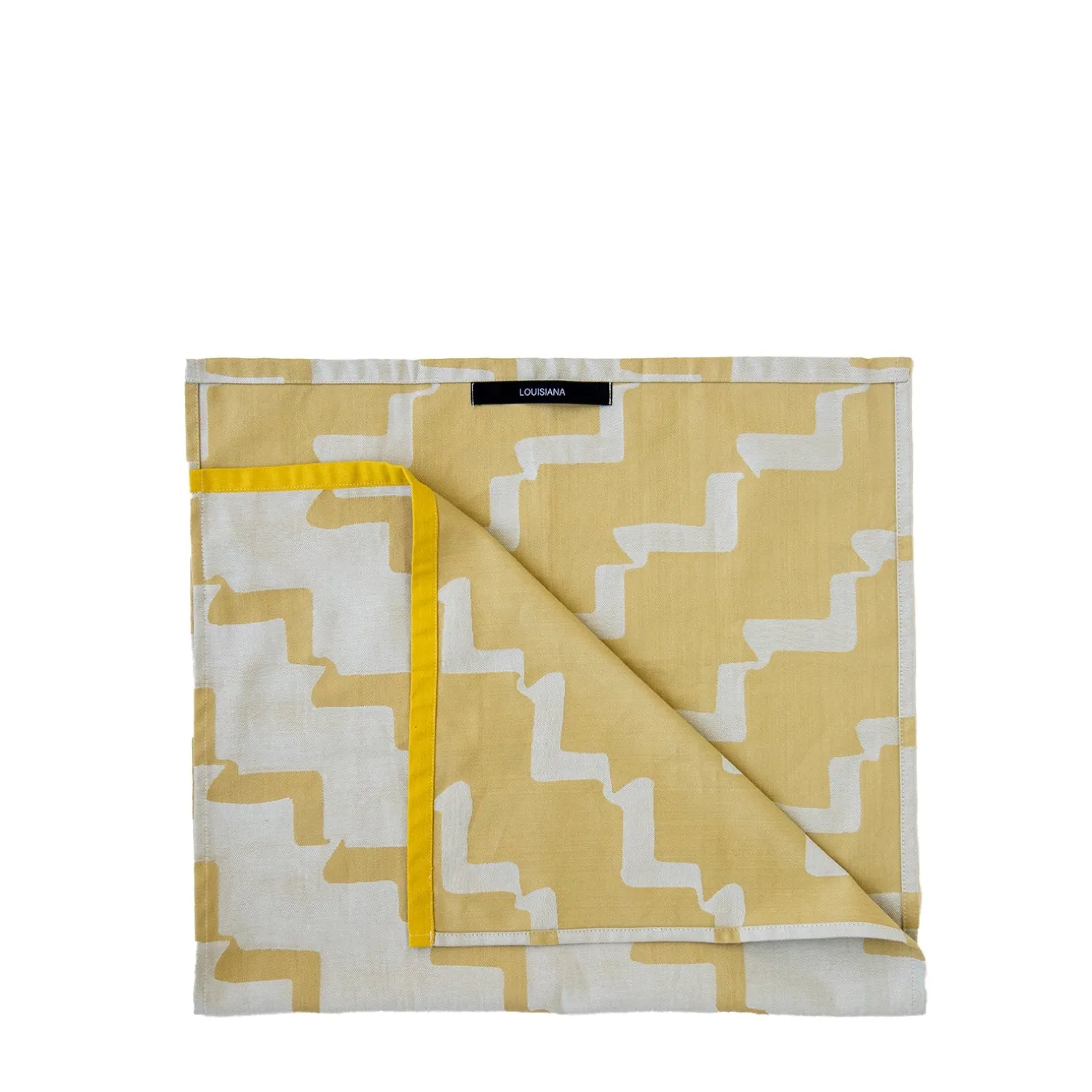 Louisiana viskestykke i 100% bomuld, jaquardvævet i et fint mønster, inspireret af den lange mur, der afgrænser Louisianas cafe, parallelt med Øresund. Jaquard vævningen giver valget mellem to udtryk, et på hver sin side af viskestykket. Det er designet af Louisiana og vævet i Italien.