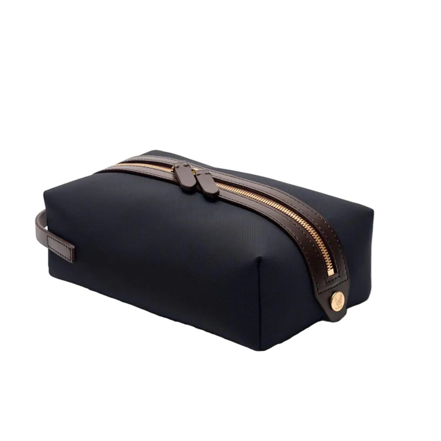 Toilettaske, M/S Groom, fra det danske designbrand Mismo. Toilettasken har to små indvendige slide-down-lommer på den ene side og en aflang lomme med overlappende lukning på den anden. Tasken er fuldt foret med en tynd nylonforing for ekstra holdbarhed og nem rengøring.
