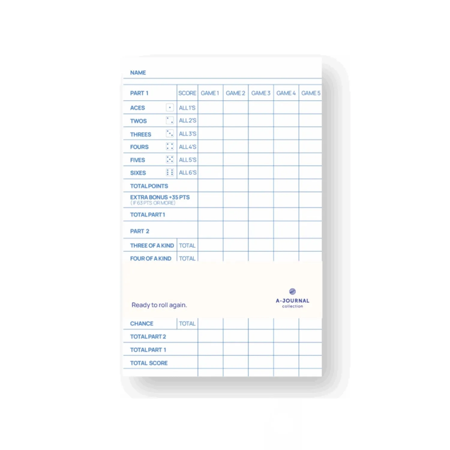 Notesblok, A-Yatzy Refill, fra det hollandske designbrand A Journal. A-journal er et ungt og passioneret papirvarebrand fra Holland. Brandet udspringer af en stor kærlighed til papirvarer og et ønske om at organisere hverdagen med blæk og papir, alt sammen med inspiration fra det enkle, klassiske hollandske design.