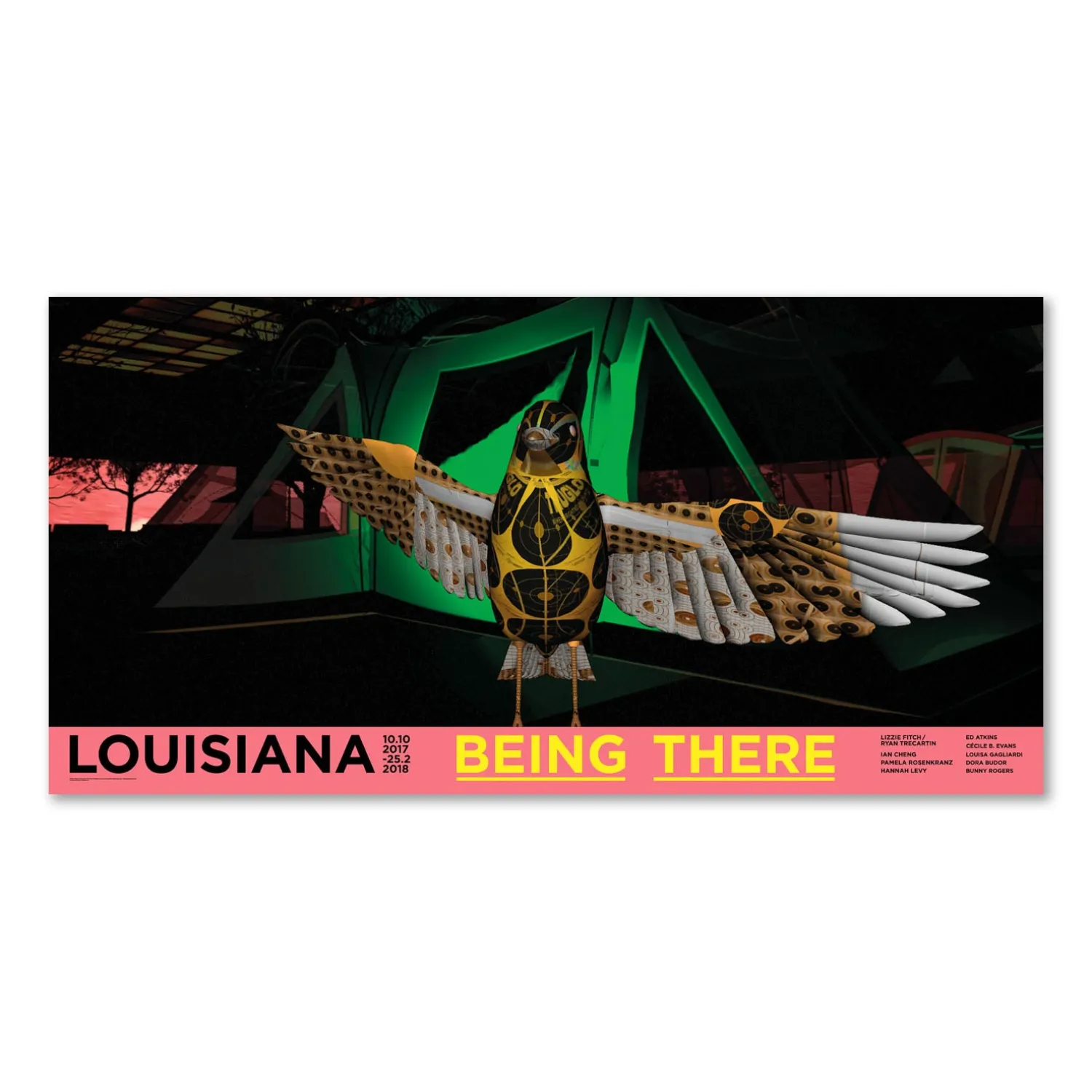 Louisiana Plakat med værket Temple Time Still af videokunstner Ryan Trecartin. Ryan Trecartin er bedst kendt for sine glitch-prægede videoer, der kombinerer lag af lyd, narrativ og computereffekter i en informationsmættet verden af Internetalderens banalitet.