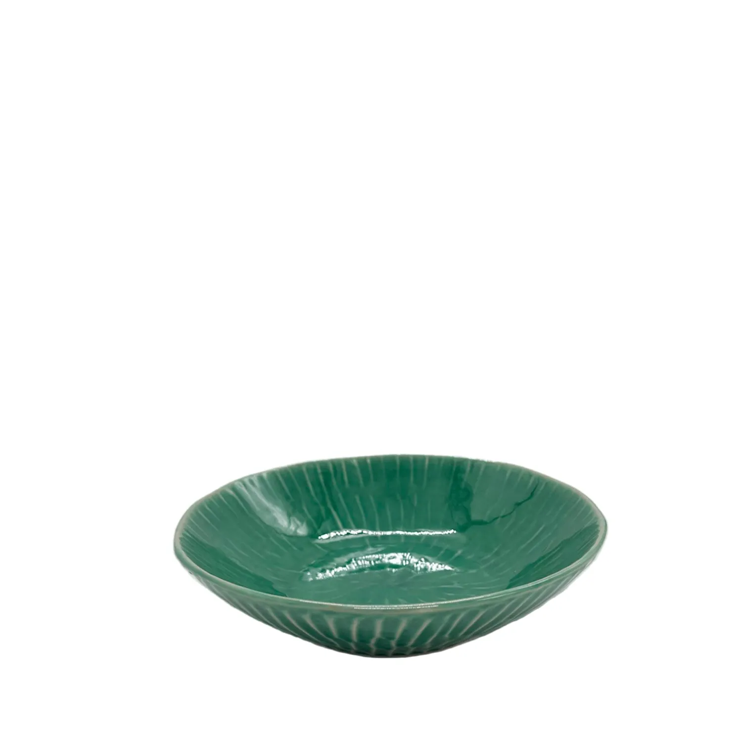 Serveringsskål fra det belgiske designbrand Serax. Skålen er farvet med solbleget glasur og har en muslingelignede struktur.