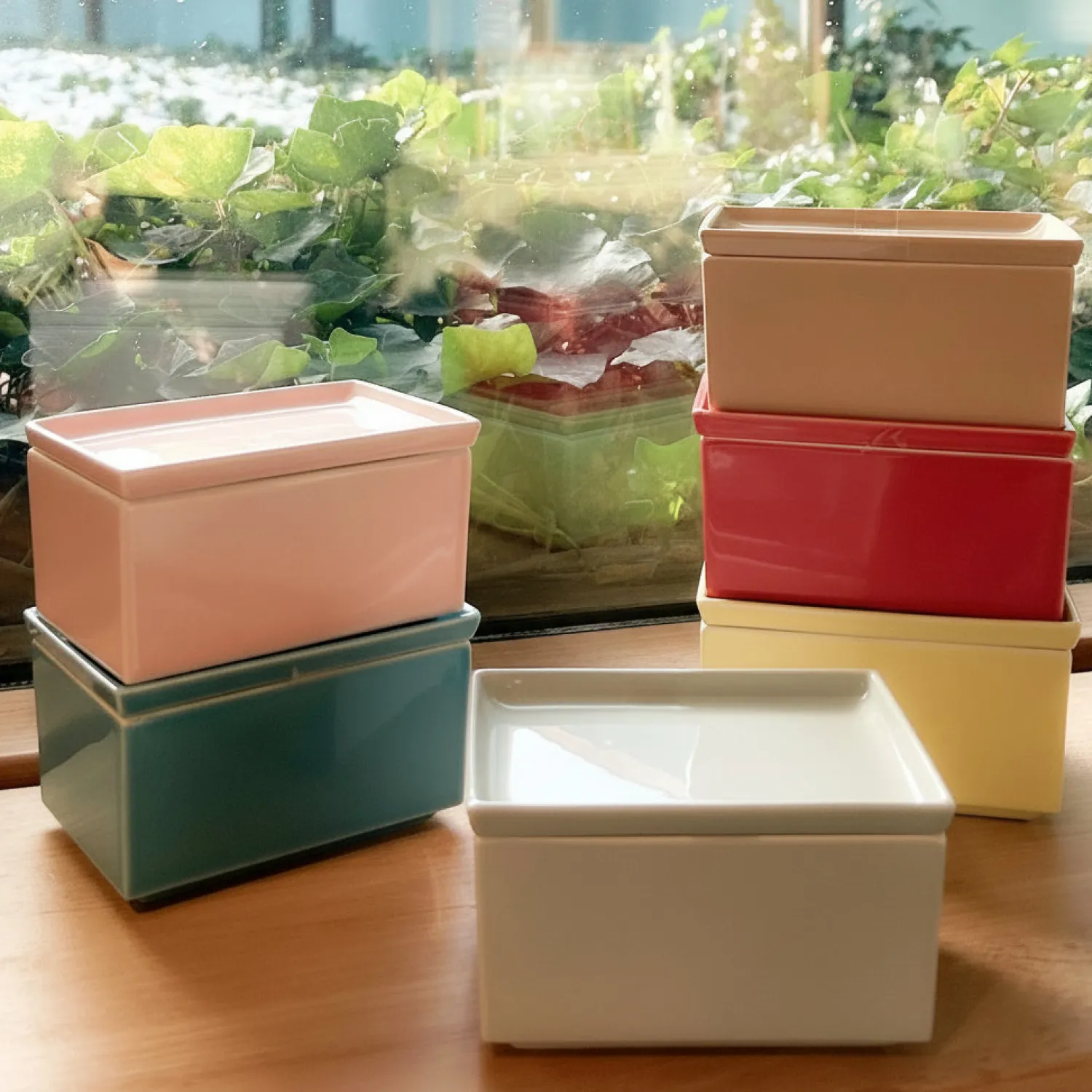 Enkel og dekorativ smørboks fra Rigmor Als. Smørboksen er i porcelæn og er brændt ved 1280 grader, hvilket gør porcelænet hård og tæt, så det ikke suger vand. Smørboksen kan derfor vaskes i opvaskemaskine. Rigmor Als smørboksen fås i mange fine farver. Vi har valgt vores favoritter og dem finder du her på webshoppen.
