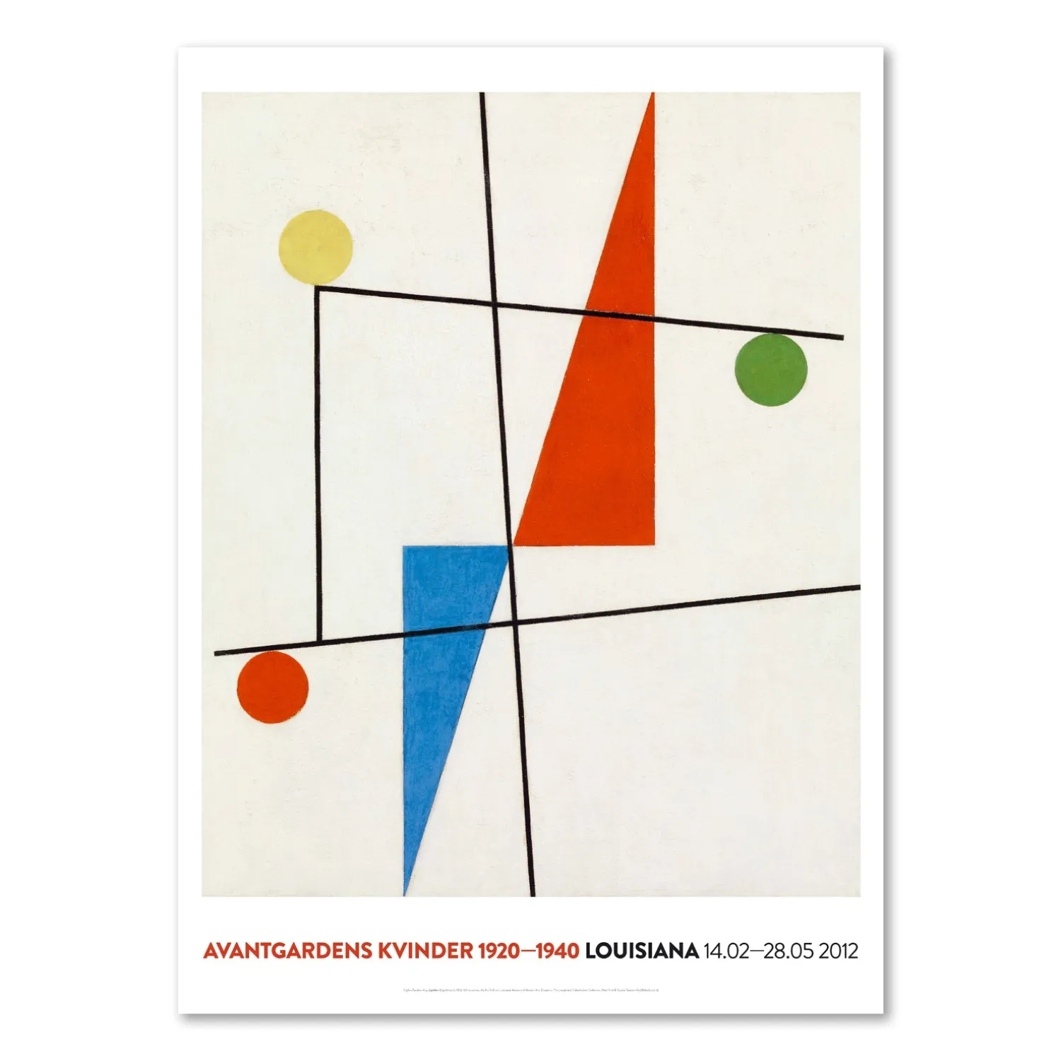Louisiana plakat med værket, Untitled, (1932), af den schweiziske kunstner, Sophie Taeuber-Arp (1889-1943). Taeuber-Arp var en af de otte målbevidste, kompromisløse og eksperimenterende kvinder, hvis værker blev vist på udstillingen, Avantgardens Kvinder 1920-1940, på Louisiana i 2012.