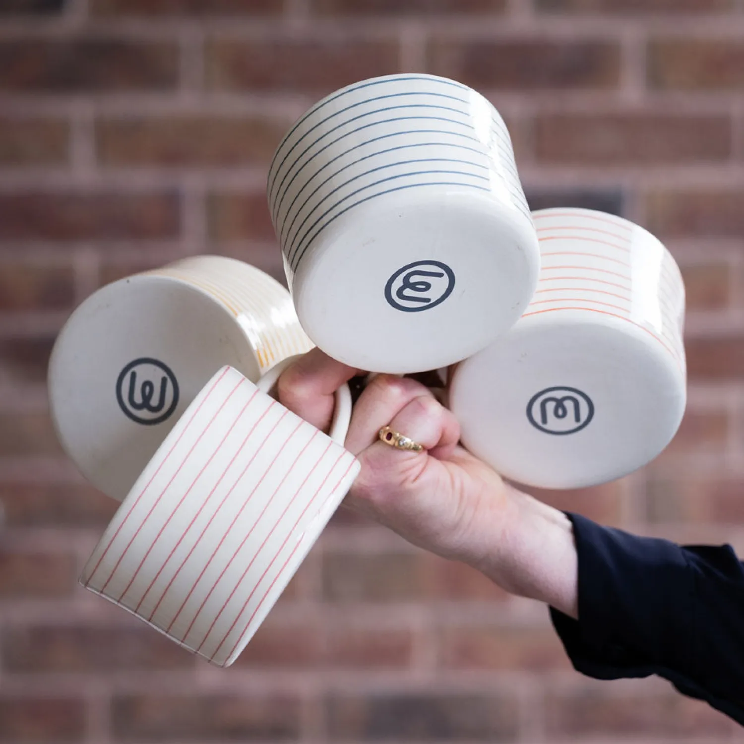 Håndlavet krus med striber, fra det engelske designbrand, Musango. Kruset er udviklet og produceret i samarbejde med lokale håndværkere i Portugal, hvor hvert enkelt bliver drejet og efterfølgende malet i hånden. Derfor kan krusene variere lidt i udtrykket.