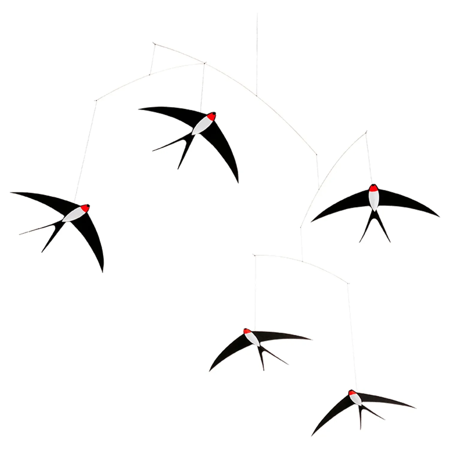 Svale-mobilen er fra det danske familieejede firma, Flensted Mobiles, der siden 1954 har fremstillet håndlavede mobiler. Mobilen består af fem elegante og akrobatiske svaler, der er i endeløs bevægelse og i evig harmonisk balance. Kan kun købes online.