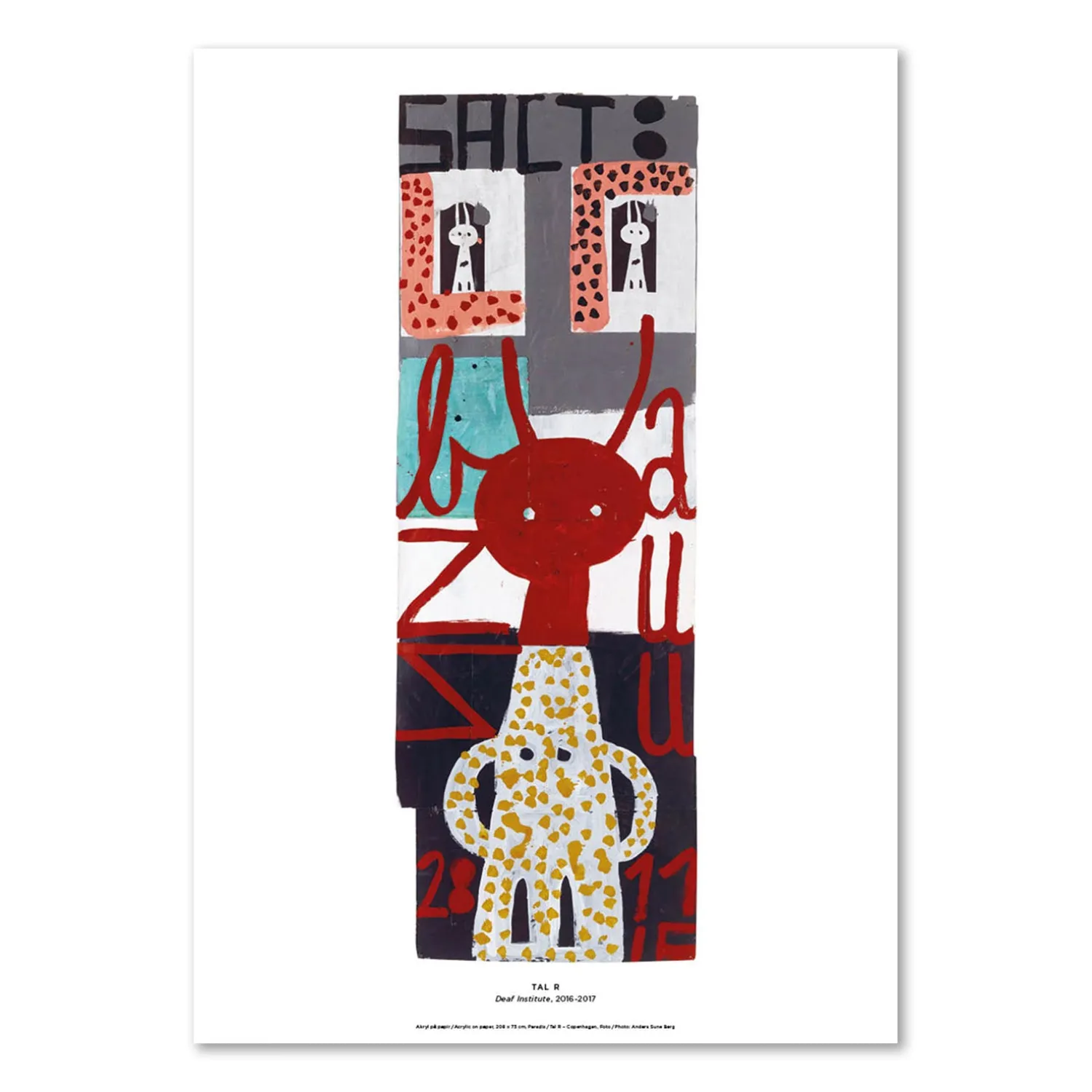 Louisiana print med værket, Deaf Institute 2016-2017 Salt, af Tal R. Tal R har siden 90erne været en af sin generations mest markante danske kunstnere og er i dag rigt repræsenteret i Louisianas samling.