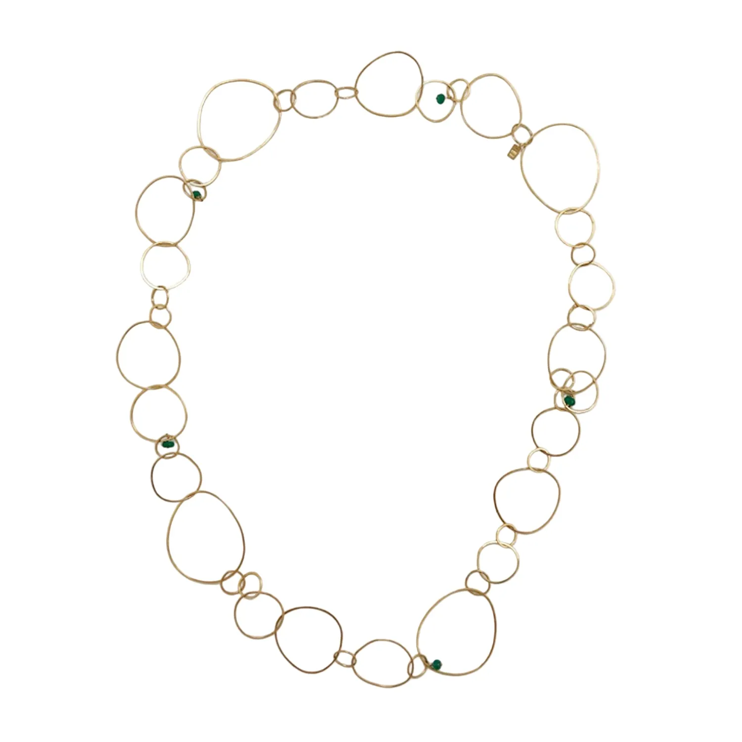 Halskæde, Very Thin Large, i forgyldt sølv med smaragder fra den danske smykkedesigner Lina Christensen.